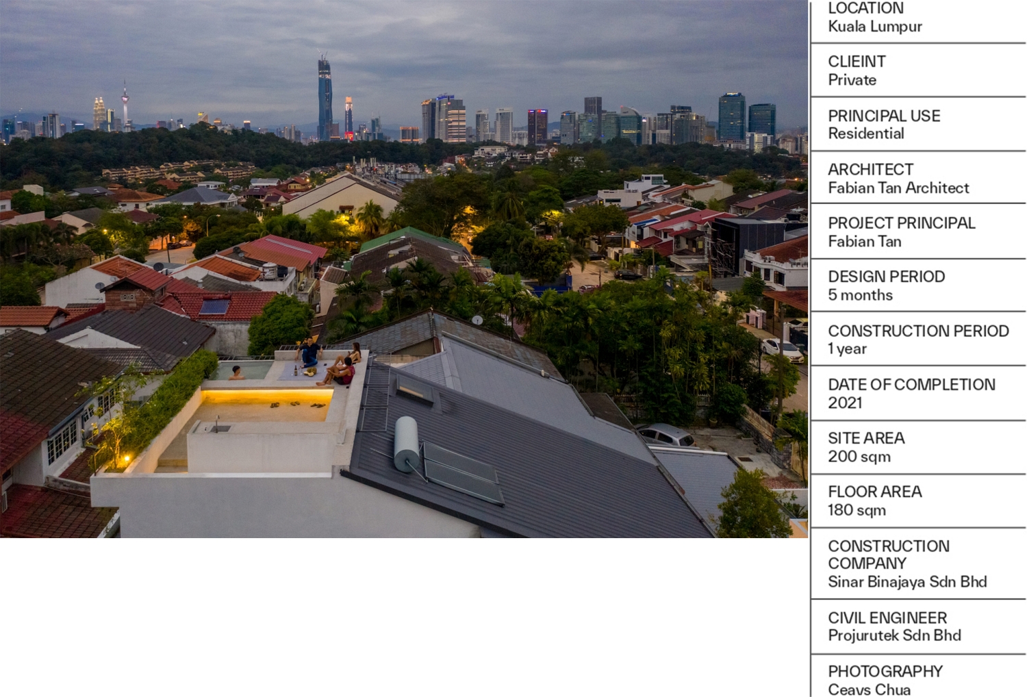 Initial observations of the former conventional terrace house of 24 ft by 90 ft were that it had a long driveway and typically resulted in very dark interiors and living spaces.A design strategy on the idea of ‘extensions’ was devised, questioning its definition that morphed into an overall scheme of extending the terraced architecture through volume, voids, and openings.The extensions employed were beyond the usual floor space extensions but looking to enlarge spatial experience through horizontal, vertical and viewing continuums.