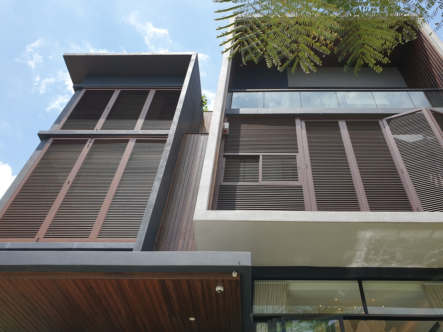 It is also important for the building skin to be able to change with the climate.The clients wanted a house that enables windows to be opened during rain or shine for maximum ventilation.So, we made the external building skin foldable for it to be tucked when maximum daylighting is desired.When the day is hot or raining, the louvers can be closed to achieve the intended light intensity indoors.And during the storm, the louvers can provide a layer of filtration from rain splashing, at the same time allowing ventilation and they will never have to worry that they forgot to close their window.