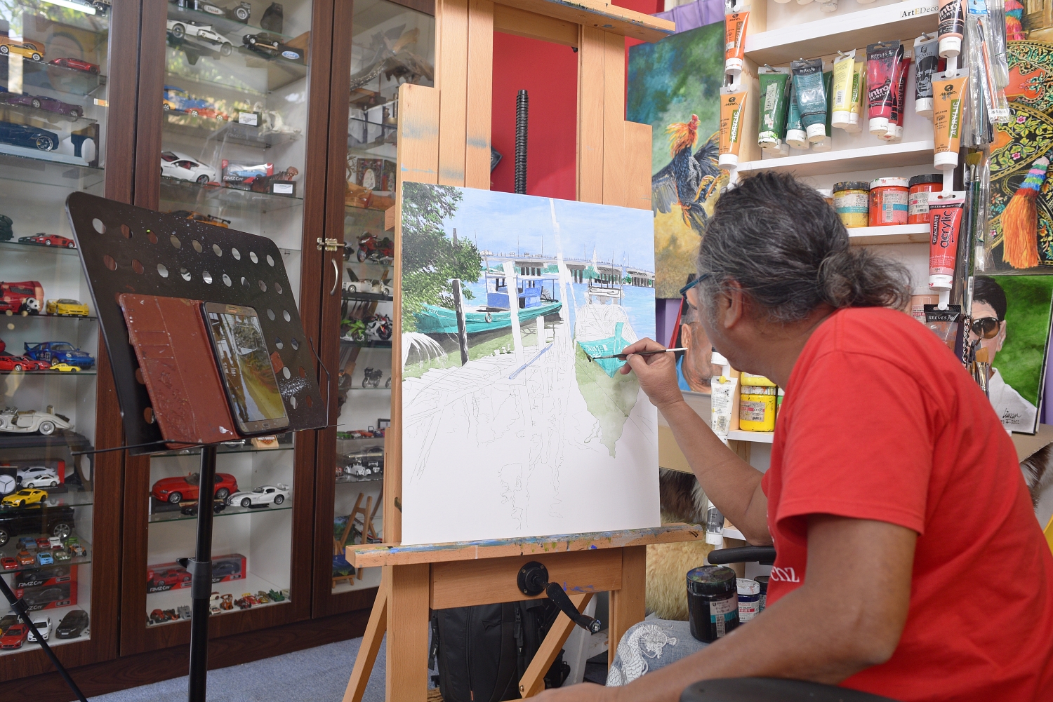 When I was a kid, there was a Punjabi man who was good at drawing. I looked at his drawings and they were amazing. One of his paintings was an underwater world scenery in A3 size, just a small painting. I asked to buy it from him, but he refused. Since then, I told myself, “I can do better than you” and started to focus on sharpening my skills in painting. Up till now, I am still in contact with that man. I do many other artworks too, not only painting. I do bonsai art, stone art and carving as well.