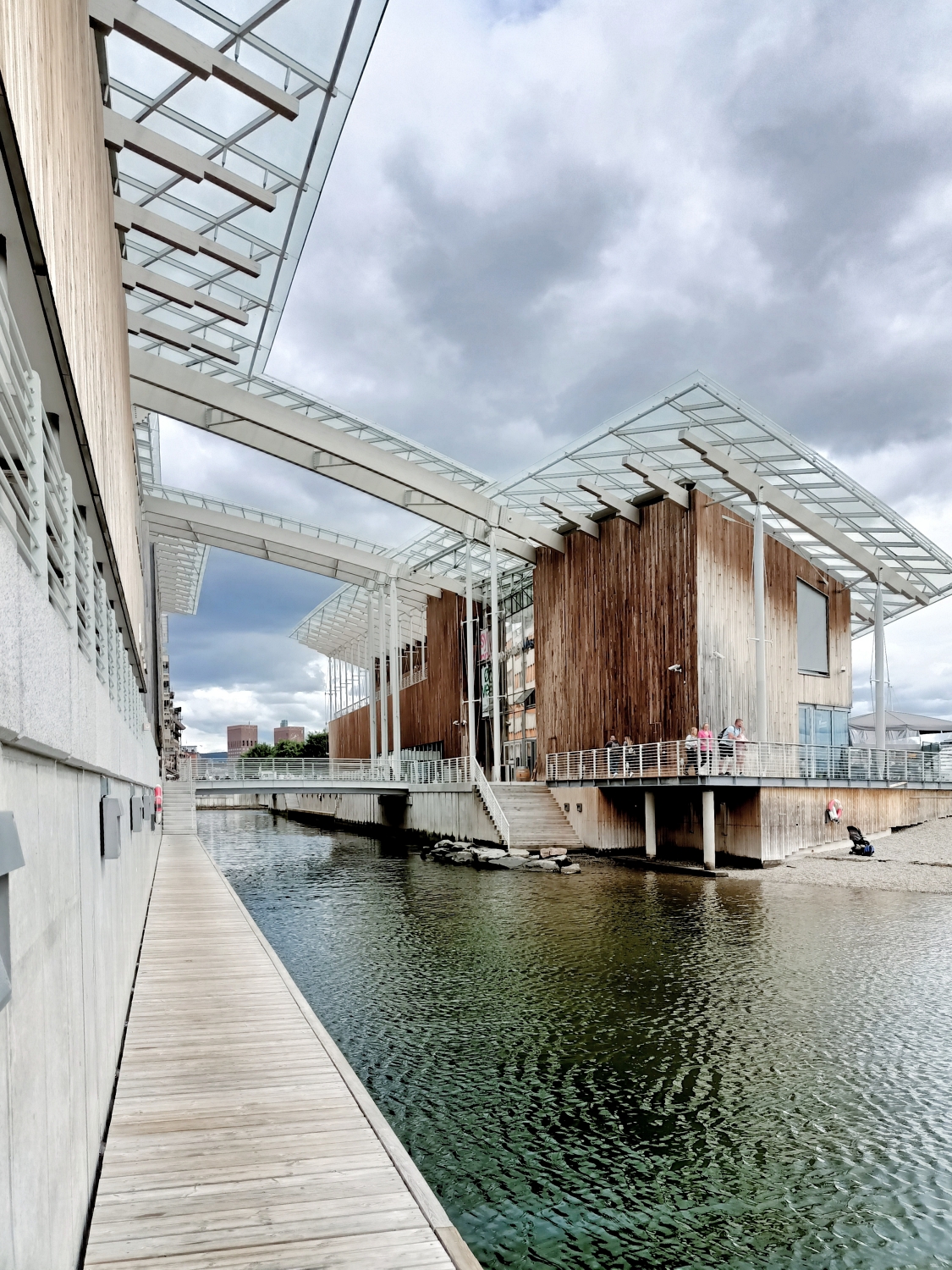 Next to the Central Station is a redevelopment project over an old dock and industrial zone called the Barcode Project.Housing international firms including PWC, Deloitte and others, the towers were designed to be rectilinear and skinny, like a barcode.And with the open plazas in between, the development facilitates views from the inland towards the Fjord.We can understand the controversial debate over the sophisticated, ultra-sleek display of this new, corporate architectural style of these towers.Personally, it creates a rather eclectic and better progressive mix for the city.And the composition of materials, details and high-performance building products, with automated systems and sensors are just insane!