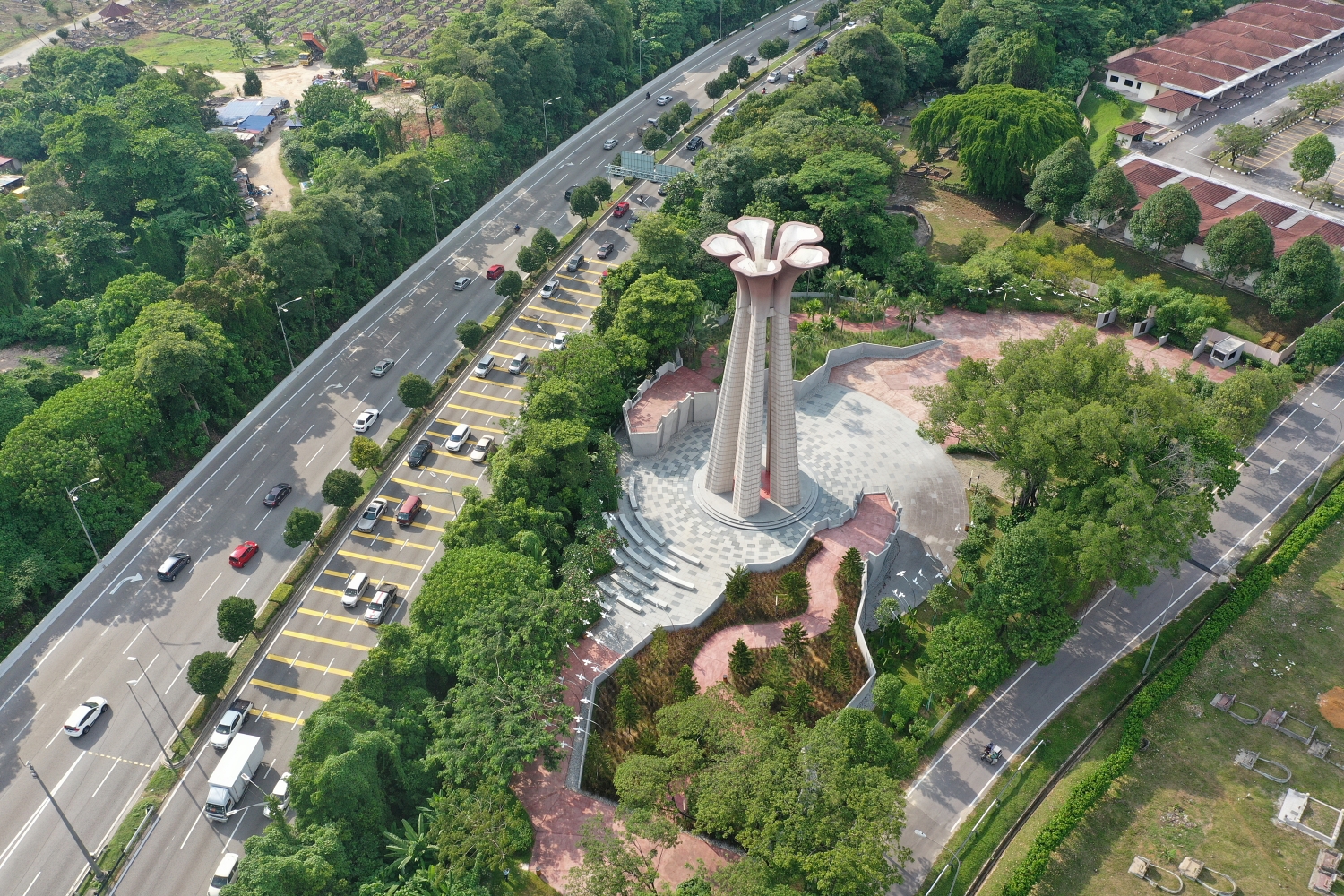 The Hibiscus Memorial Tower. Inspired by Malaysia’s national flower, the 30.8m tower celebrates the patriotism of Malaysians and their appreciation of peace since the country’s independence in 1957.The Hibiscus represents the Five National Principles of Malaysia.