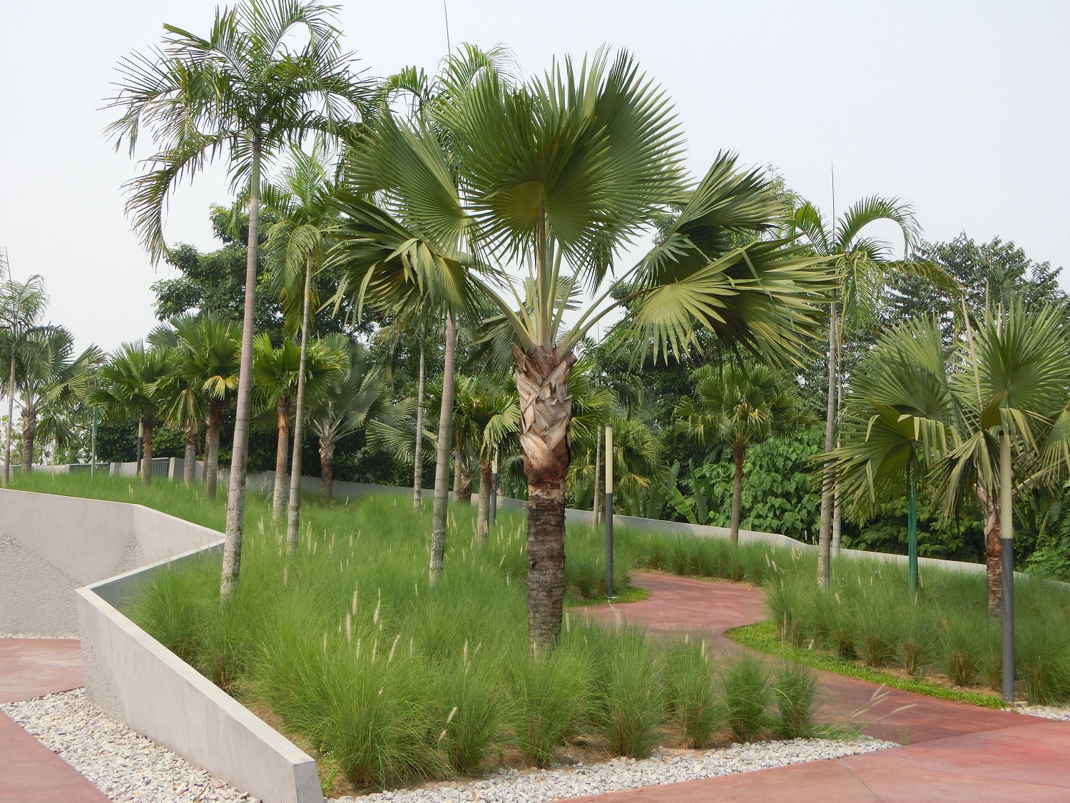 Plant selections and planting arrangements are focused on their colours, symbolic meanings and their implication for the duration of the war.Araucaria heterophylla, Norfolk Island pine and Pennisetum setaceum`rubrum’ represent Japanese imperialism at the East Garden.Bismarckia Nobilis, Carpentaria acuminata, Livistonia rotundifolia (Serdang) and Pennisetum setaceum`white’ encapsulate the tropical theme of the Malaysian landscape.
