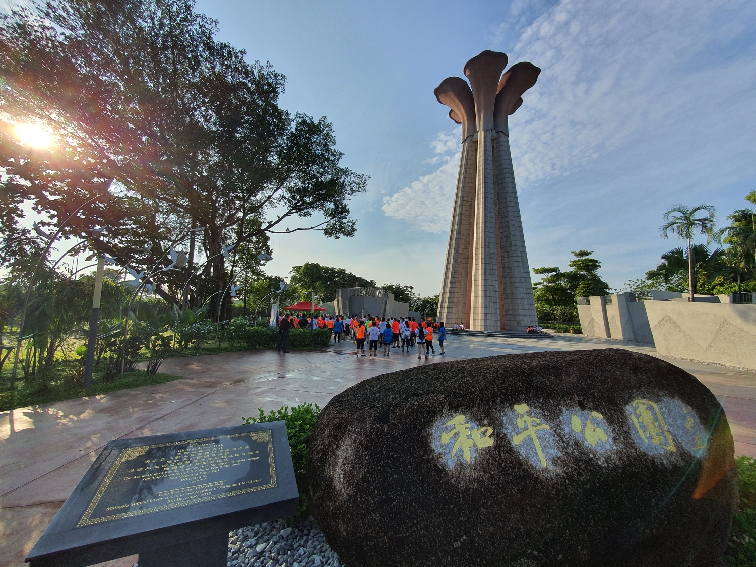 Peace Park Plaza with main signage engraved on the rock.