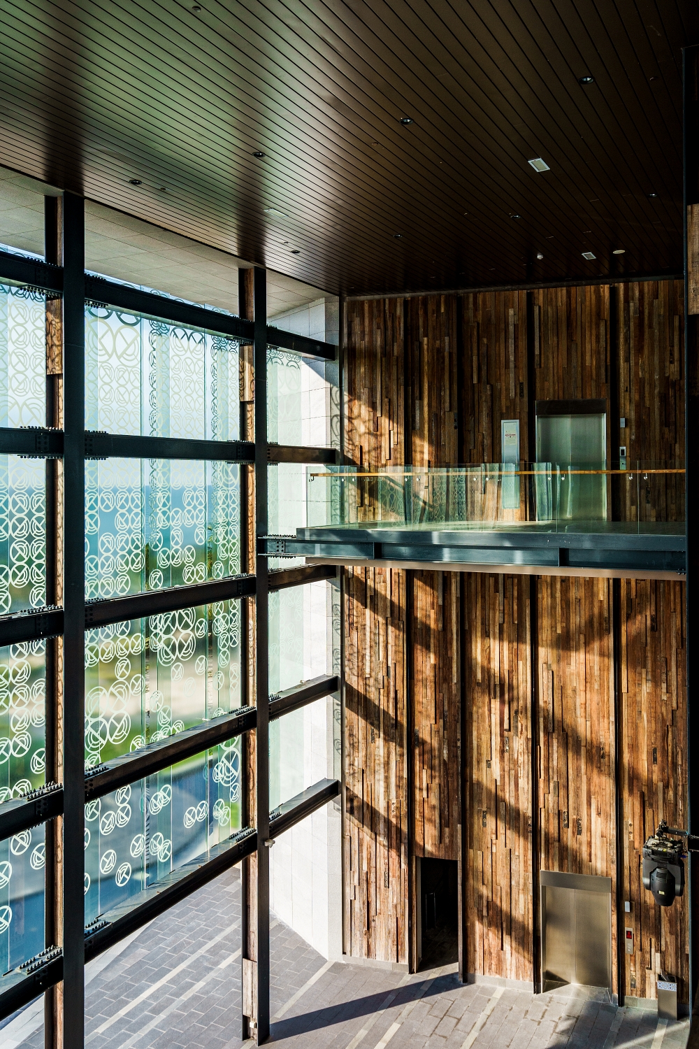 The interior design seeks to showcase local Peranakan culture, mainly inspired by the playful intricate patterns of batik and lace from traditional Peranakan fashion with cheerful, vivid Peranakan porcelain colours of deep pastels.The shading screens throughout the building help to layer the spaces, with light and shadow play formed by the intricate pattern inspired by the Peranakan traditional card game, ‘cherki’.