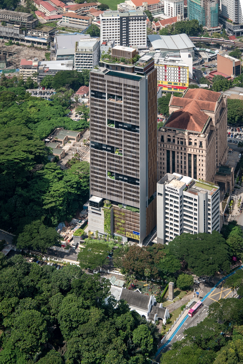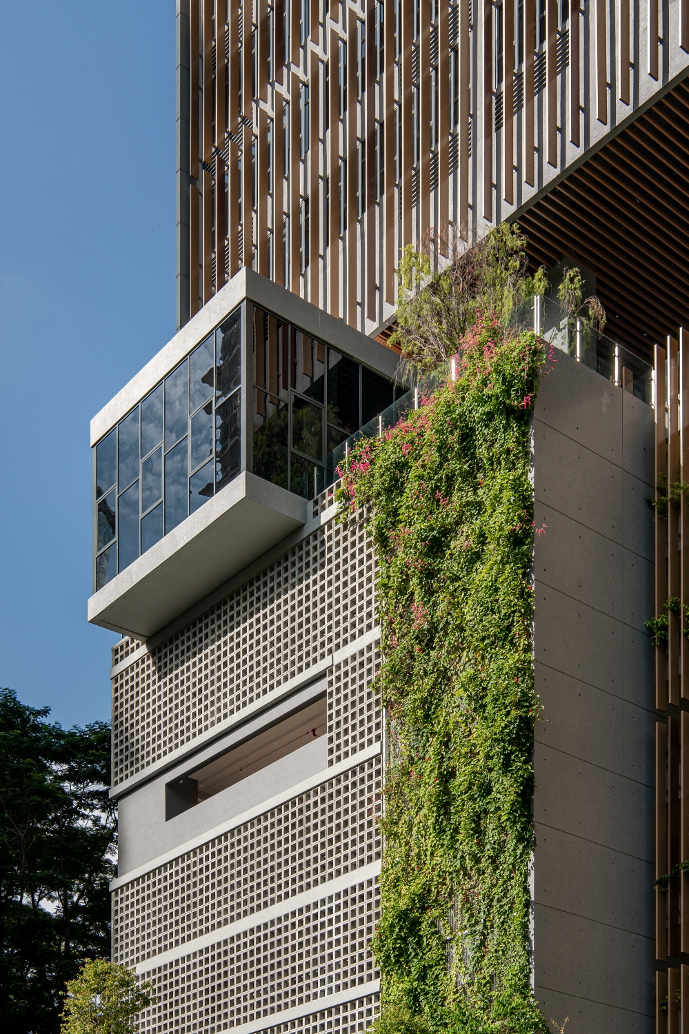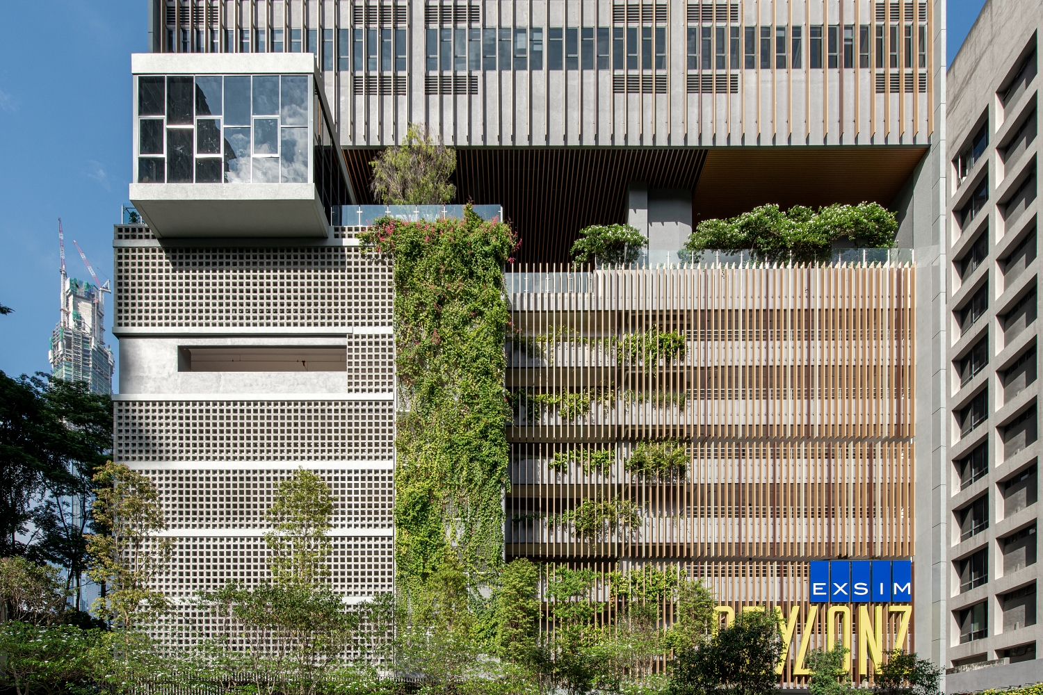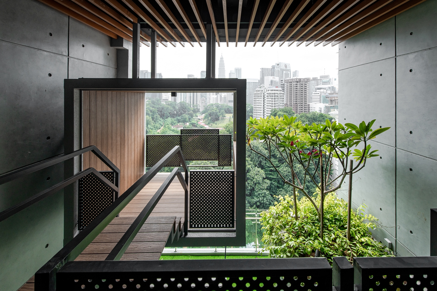 The building uses materials sporting a raw concrete look, complemented with ventilation blocks allowing natural ventilation and lighting at the car park levels.At the office levels above, the façade is adorned with timber-toned fins fixed to the glazing to screen the office units from the tropical heat, especially when it is located in the heart of the concrete jungle of Kuala Lumpur.To further reduce carbon footprint, the building is also designed with a touch of landscaping incorporated into various spaces, while simultaneously enhancing the quality of space with opportunities for leisure activities.