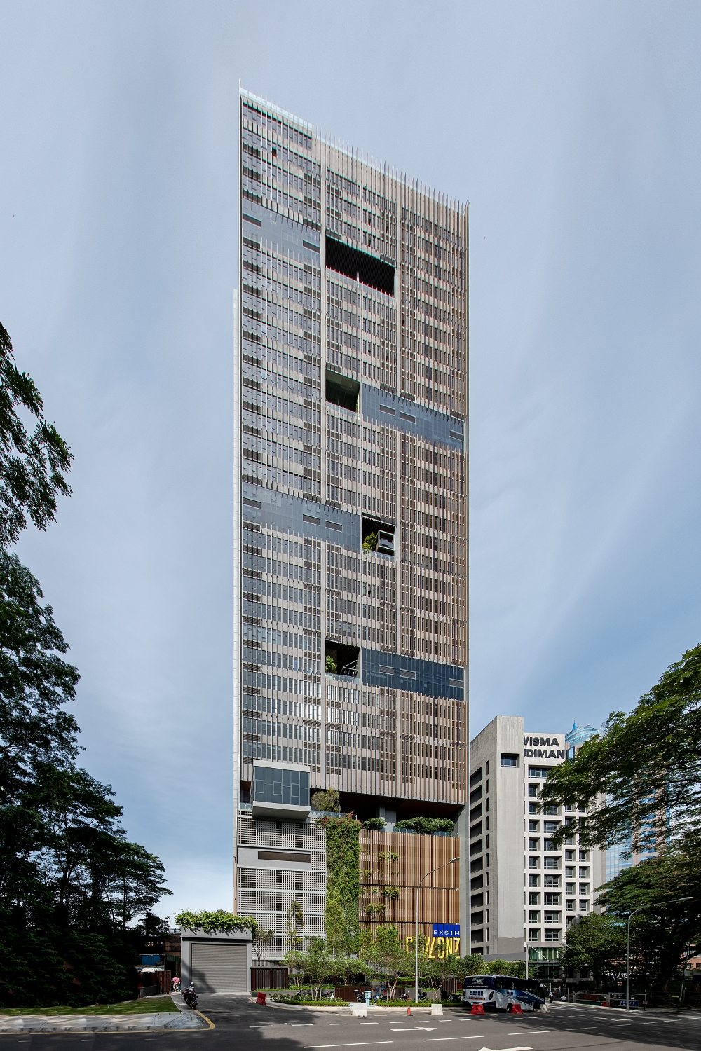 Creative material use synchronised to the theme of natural elements results in a unique conception of a sustainable and livable high-rise, rich in character and natural aesthetics. The ingenious distribution and integration of pocket gardens throughout the development substantiates this further.