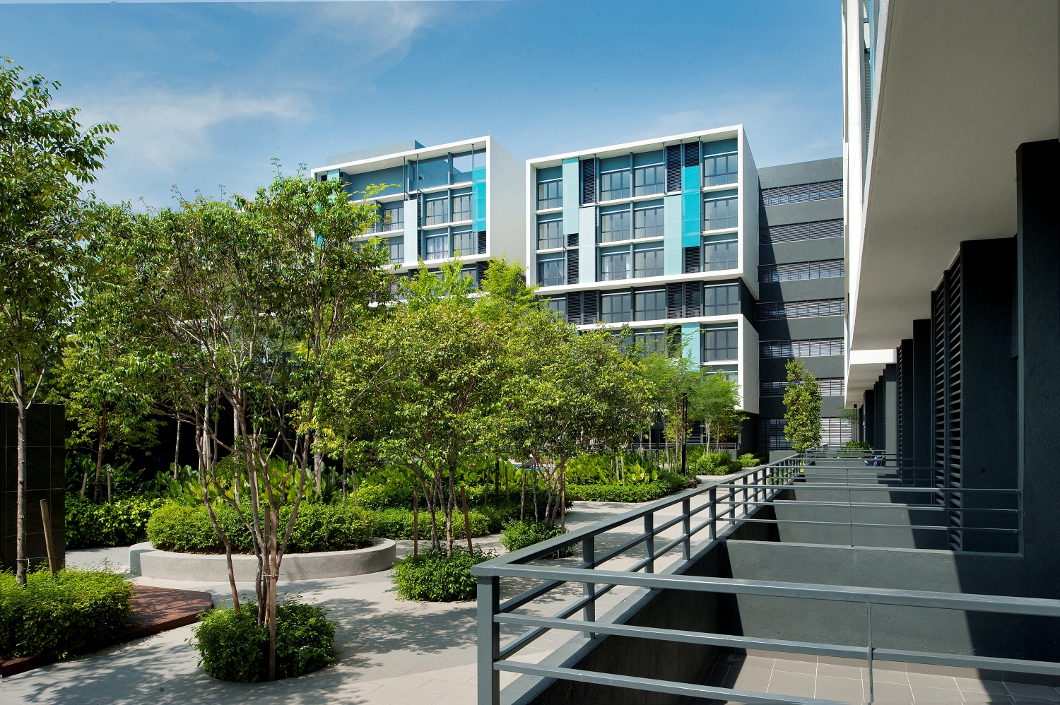As it is not a high-budget development, the choice of building materials that can be incorporated into the building design is limited.In response, the building was designed with a bold form of architectural elements projecting a character and visual appeal to the building without having to rely on the aesthetic quality of building materials.Apart from the glazing and the screens, the façades are mostly finished in plaster and paint.Hence, constant monitoring of the workmanship of the façade is required to ensure they are up to the acceptable standard.