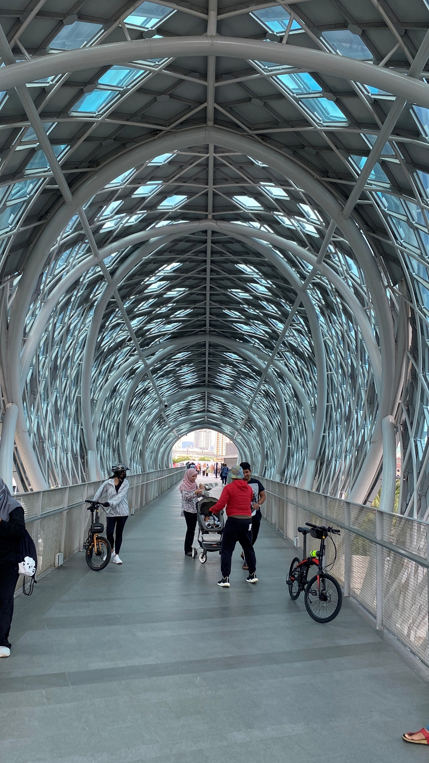 The Saloma Link is a pedestrian bridge that connects Kampong Bharu, the traditional Malay enclave dating back to the late 19th century with Kuala Lumpur City Centre (KLCC), a modern cosmopolitan Central Business District (CBD).Both were formerly separated by the Sungai Klang and the six-lane AKLEH highway.It re-established the historical connection between Jalan Ampang and Kampong Bharu, among the prominent enclaves that create Kuala Lumpur.