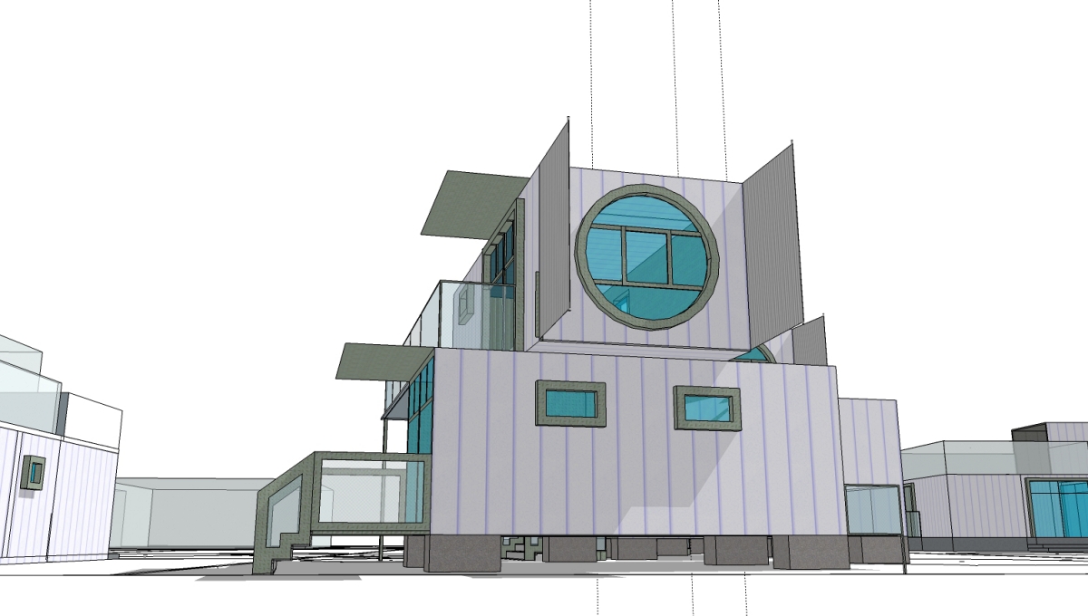 “Dare to tilt – break the boxy feeling from box. Let the tilt become the lighting tube at night. Bring people up from inside the box to connect to the deck and let them experience the journey to the ocean each day and night. This is the entrance statement to Alun” Ar. Rushdina