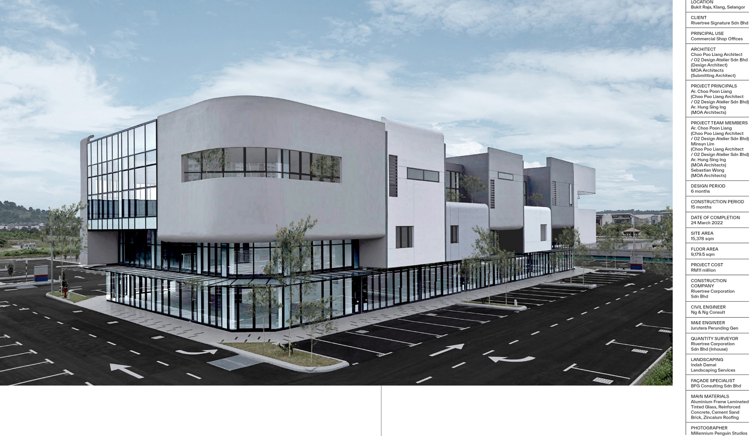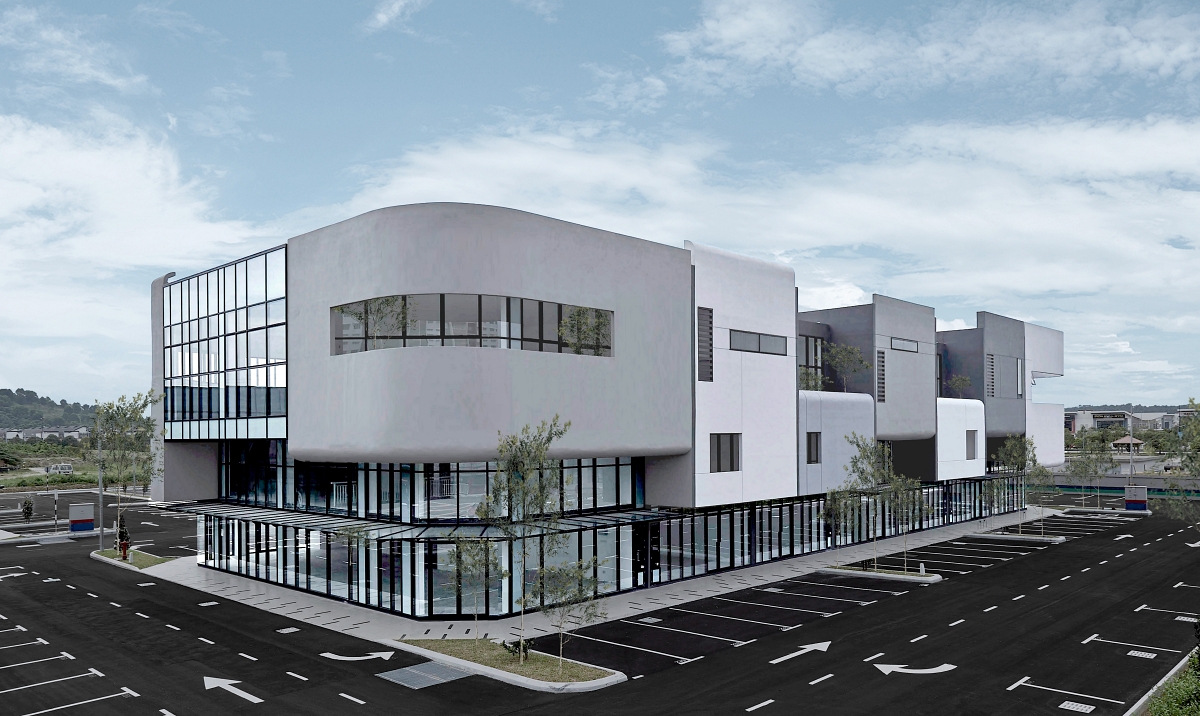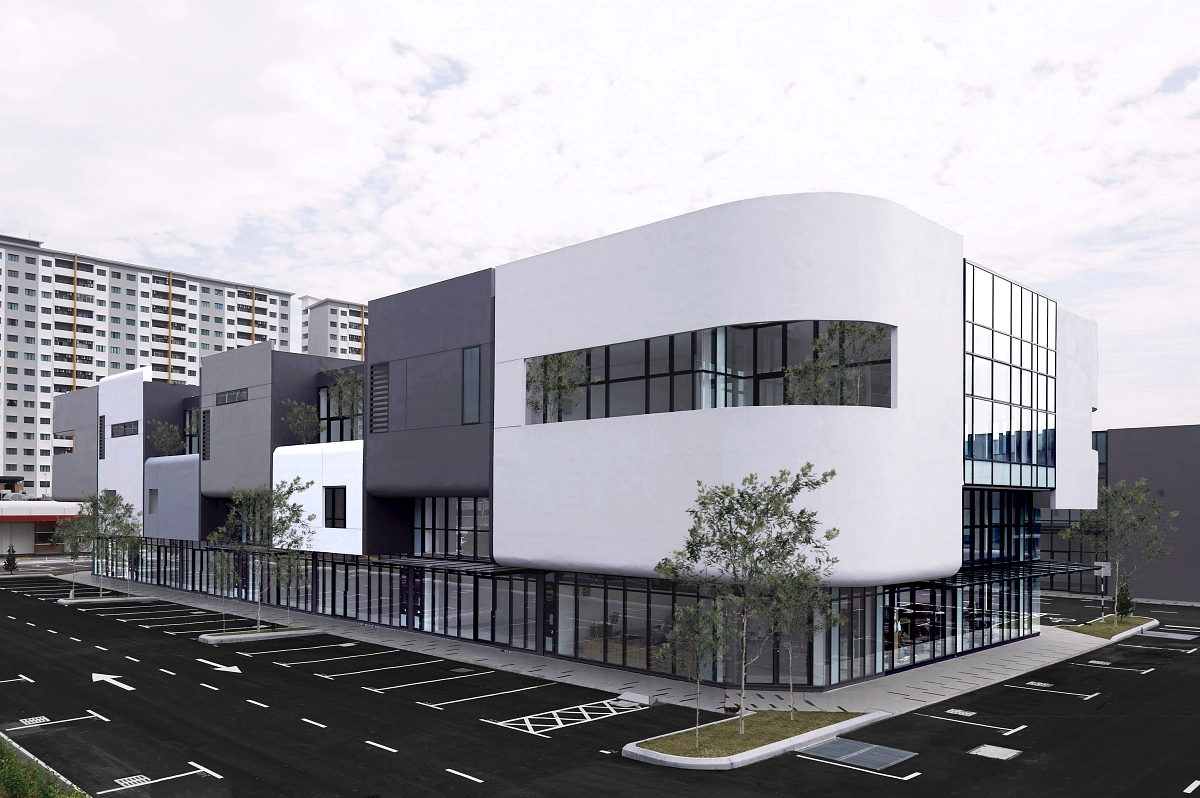 Uno retail development is inspired by upscale shopping mall retail shopfront with a full-height glass curtain wall façade.The idea is to move away from the conventional solid wall, small windows and large, messy signages in typical retail shop lots.