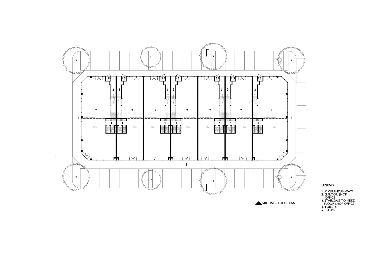 The glass façade has been designed with various sizes of glass panels and heights to create randomness and hierarchy in the overall façade compositions, a departure from the typical repetitiveness.The idea of line, edge and transparency has been accentuated.The entire length of the 5-foot way is fully shaded with tinted glass canopies to protect pedestrians from rain and sun.The signages will be tastefully designed and positioned to blend with the beautiful façade.