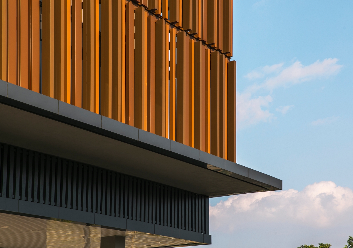 To improve the consumer experience, the design utilises an outstanding interplay of materials, art installations and landscaping.A deep façade sporting aluminium-lined louvres wraps the side elevation and screen the mechanical services behind, providing a stylish touch.