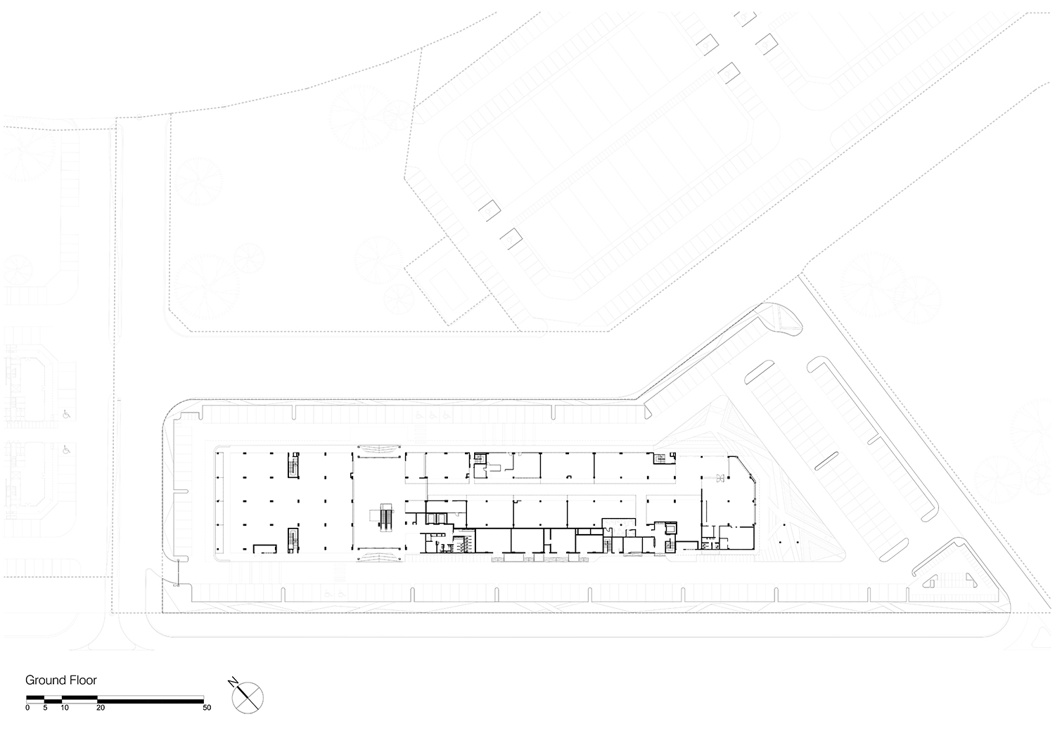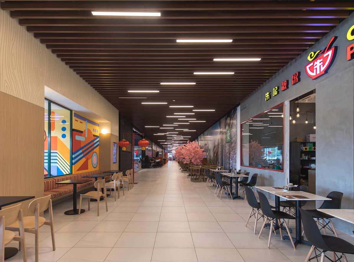A centralised pedestrian walkway echoes the strip mall concept, defining the crowd traffic flow for an easy and frictionless shopping experience.The central atrium encourages connectivity through the different floors and allows customers to get an overview of the mall’s offerings to facilitate quick purchases when necessary.