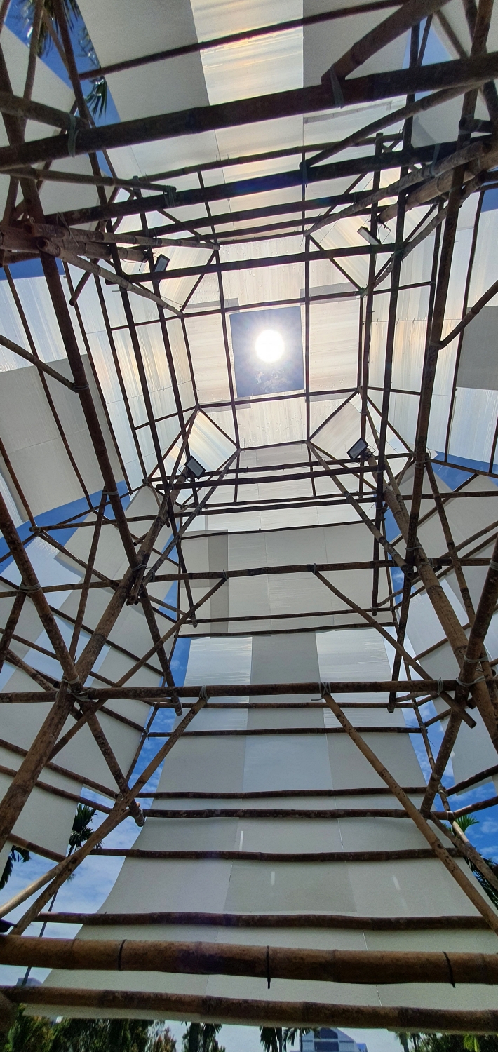 In terms of building materials, the structure is made of bamboo,just like traditional lanterns. Bamboo was harvested and cured earlier in August by the skilful Bidayuh community from Puncak Borneo. It took a month from harvesting to installation in the park.
