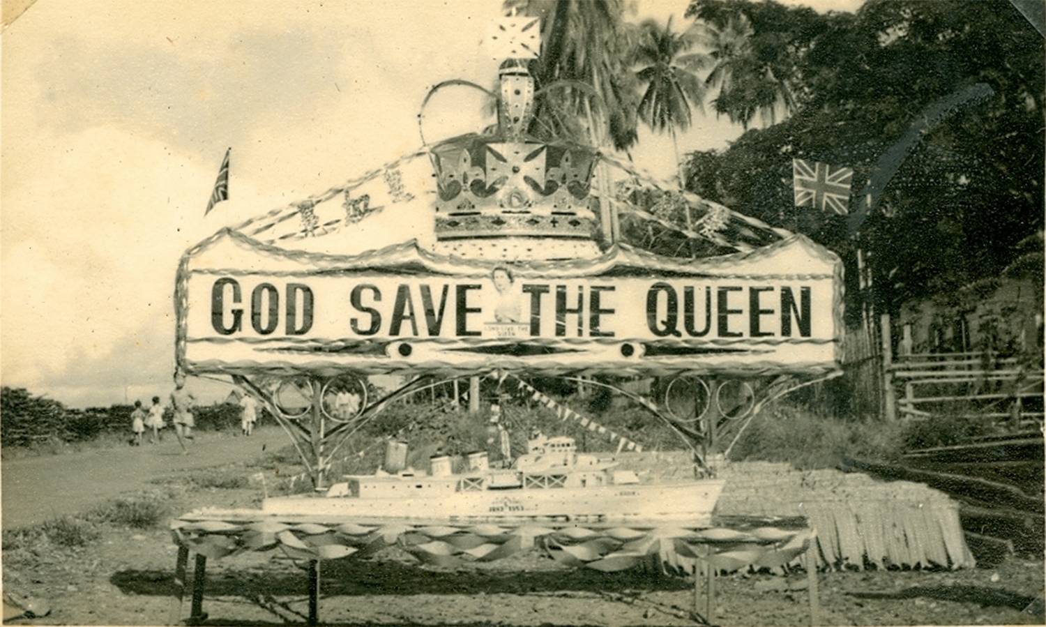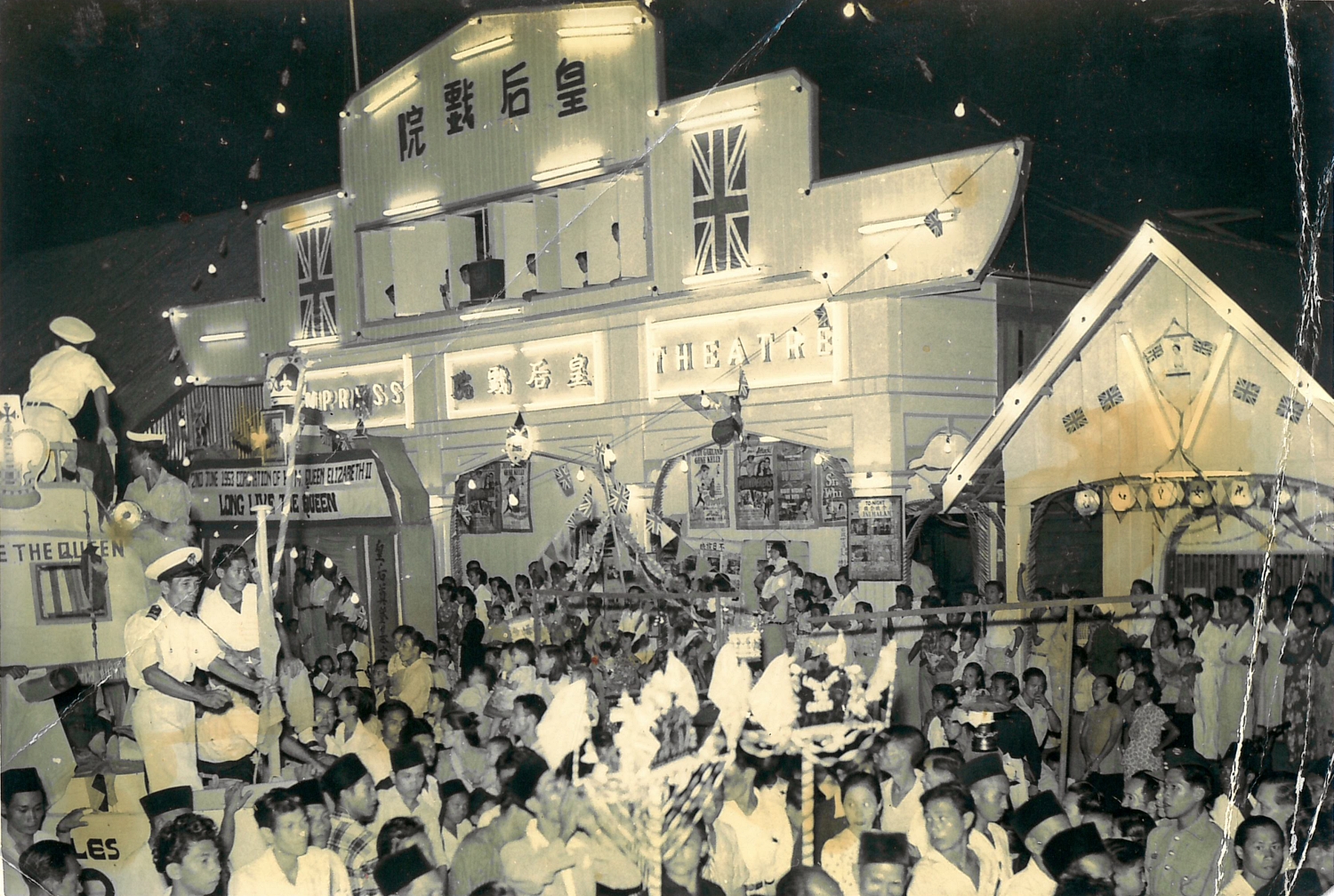 Evening celebration of Queen Elizabeth II’s coronation in Tawau town in 1953