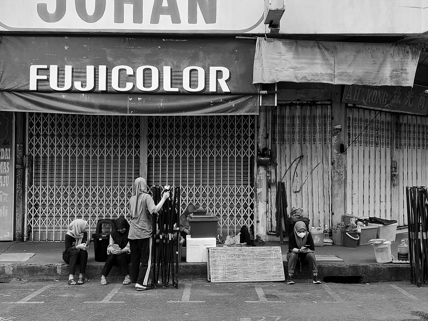 As the shops close for the day, the night market hawkers slowly take over Jalan Chester. Here, the five footway becomes a waiting and social place for the hawkers