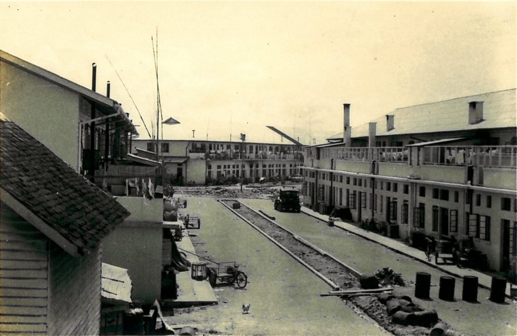 Tawau reconstructed with concrete shops a!er destruction of the timber shops during the Great Fire of 1953. Date of photo unknown.
