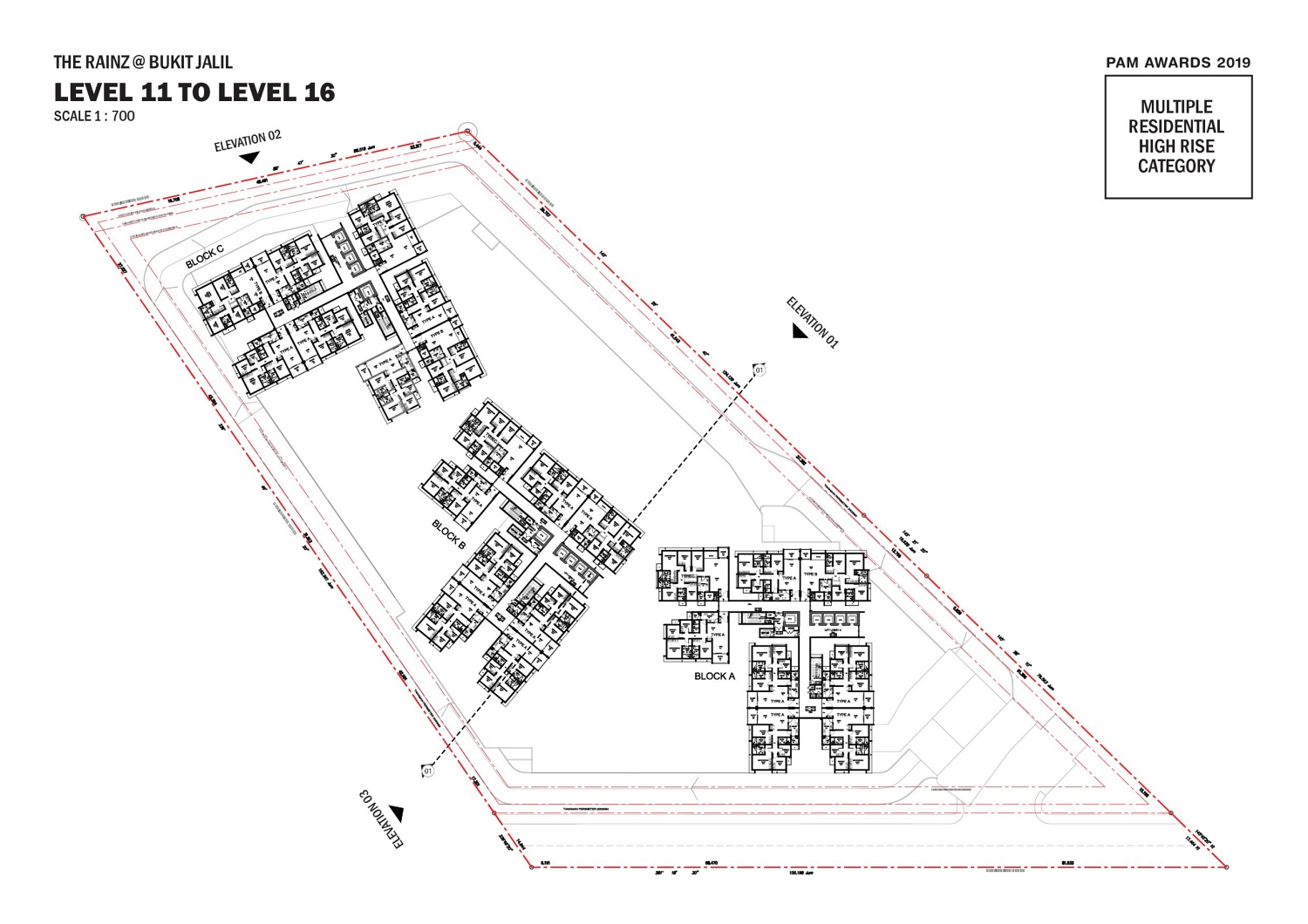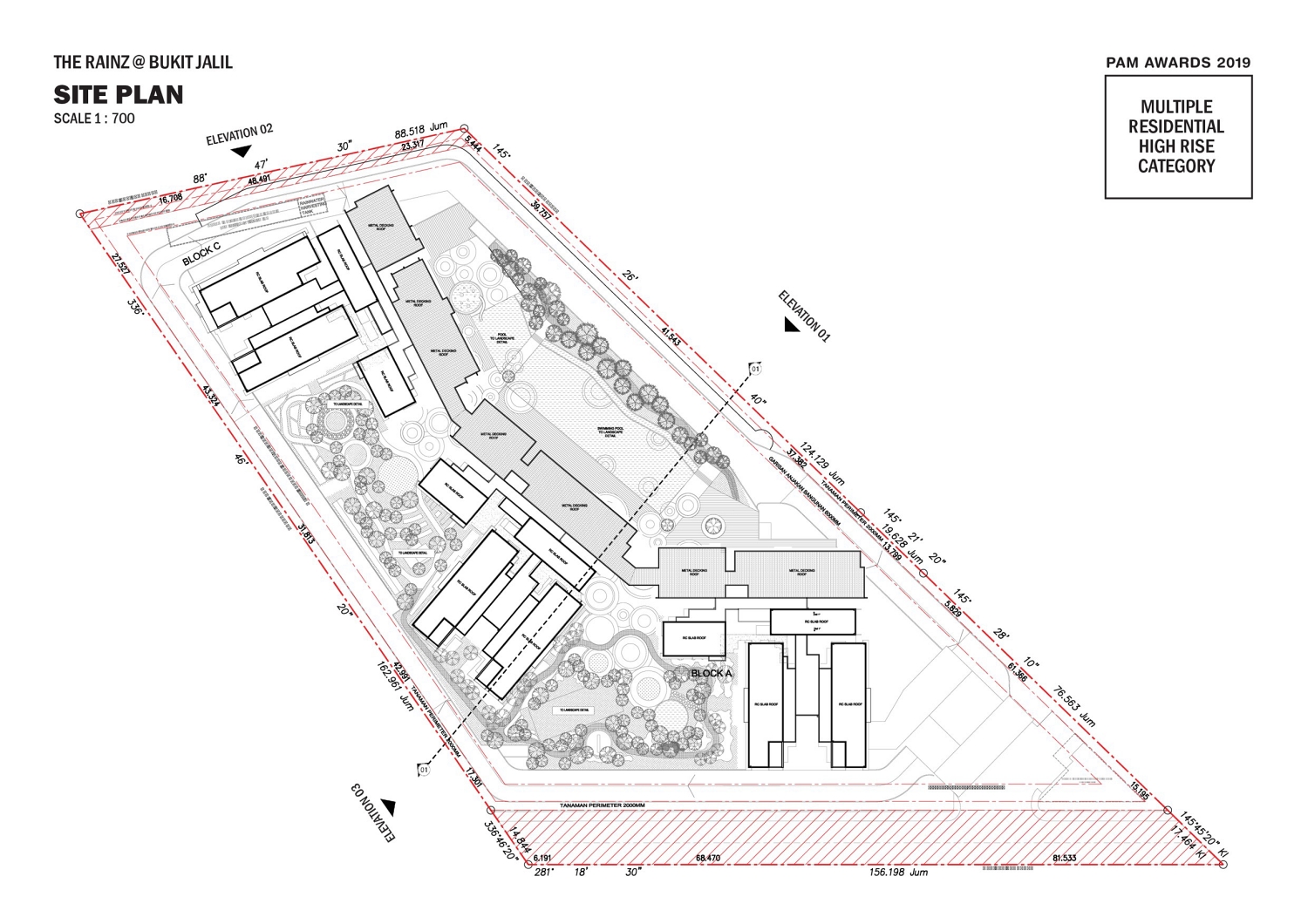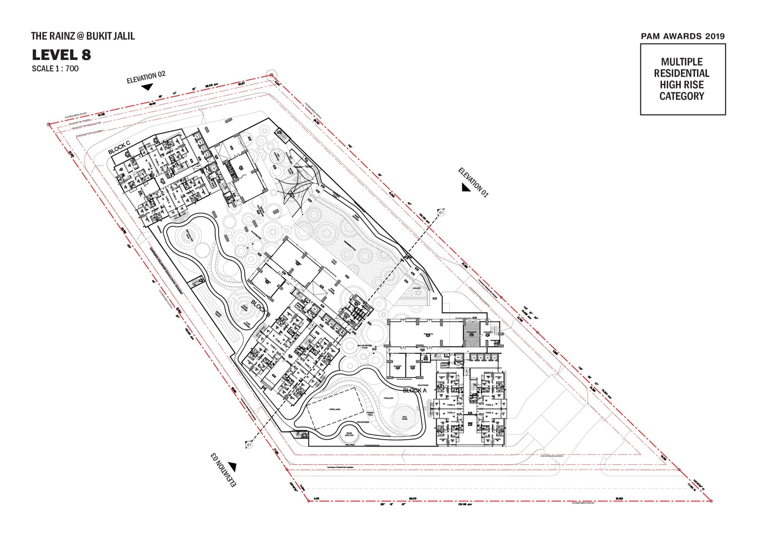 The Rainz is sited in Bukit Jalil, a developing suburban neighbourhood and home to several high-rise residential apartments and landed residential properties. Situated within an enclave of high-rise residential apartments, one of the architectural challenges that were present was building a unique and identifiable identity amongst a dense and typified apartment typology. Hence, inspired by a seemingly common nature element in Malaysia, the ‘rain’, we sought to push the boundaries and explore the various translation of this idea into every element of the building design.