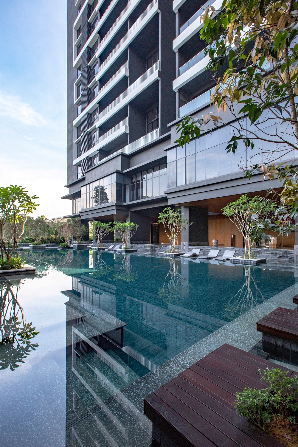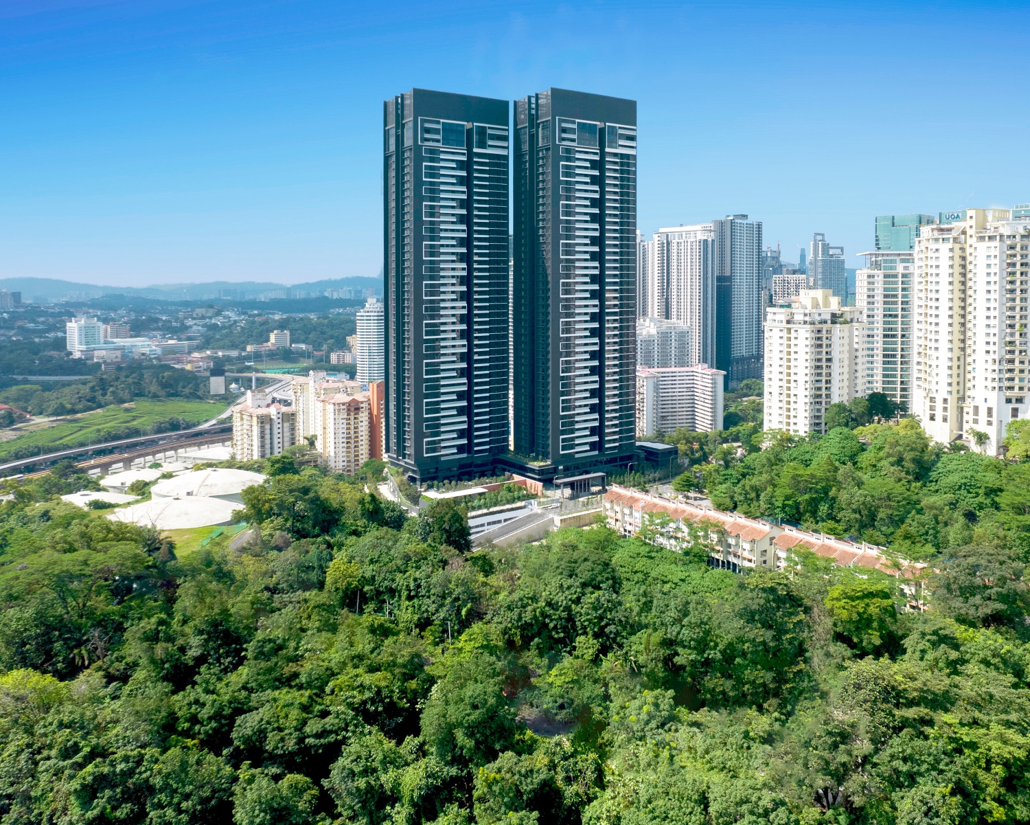 In the depths of the Gasing hill forestry, twin towers emerge from the rhythms and melodies of the southbound winds. The Estate captures the essence of its natural surroundings, drawing inspiration from a pianoforte for its triangular site design. The twin block towers feature a series of boxed louvres that alternate, creating a dynamic shadow play throughout the day. Each block represents an instrument in the ensemble, standing out as a local visual landmark.