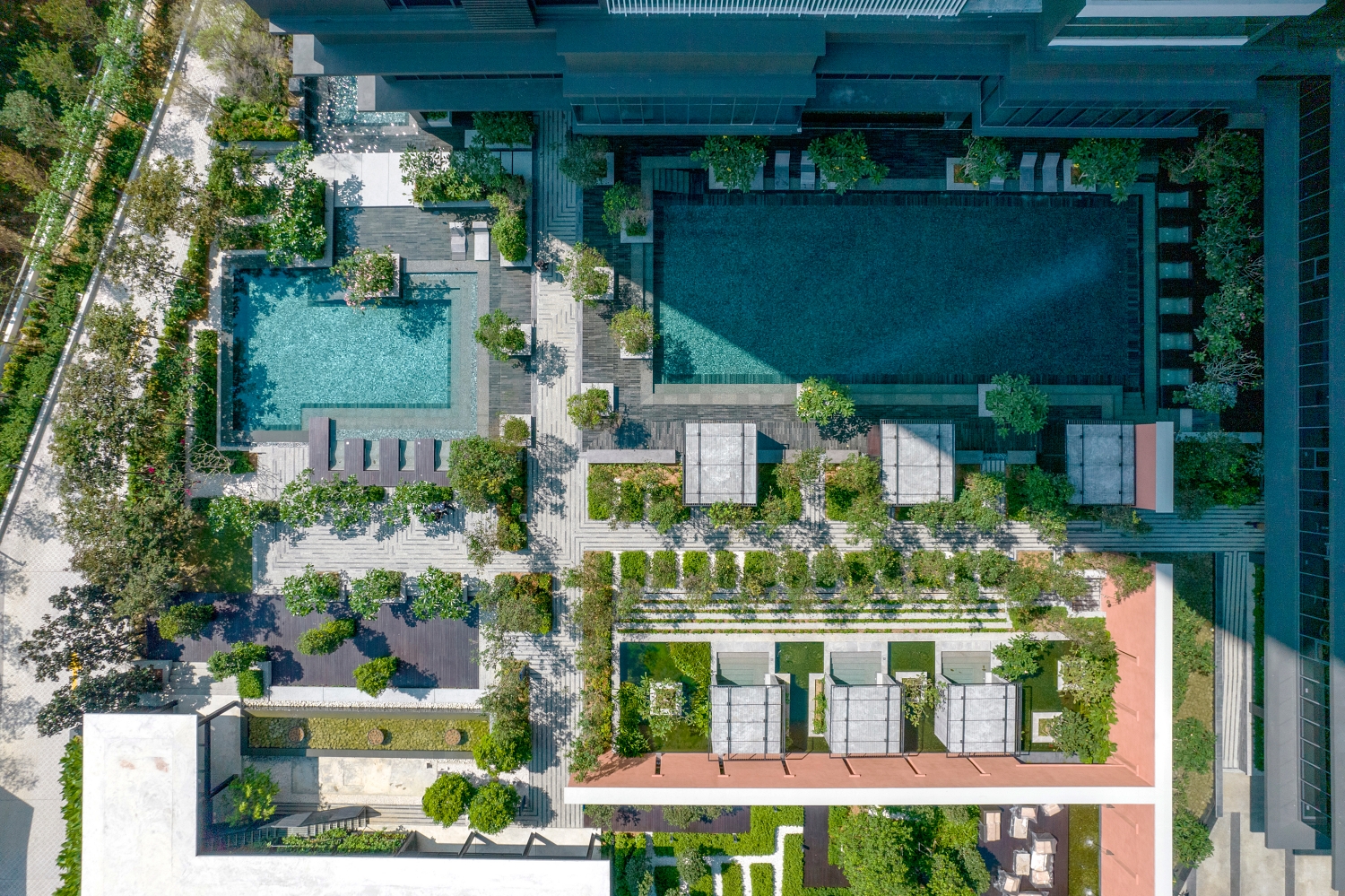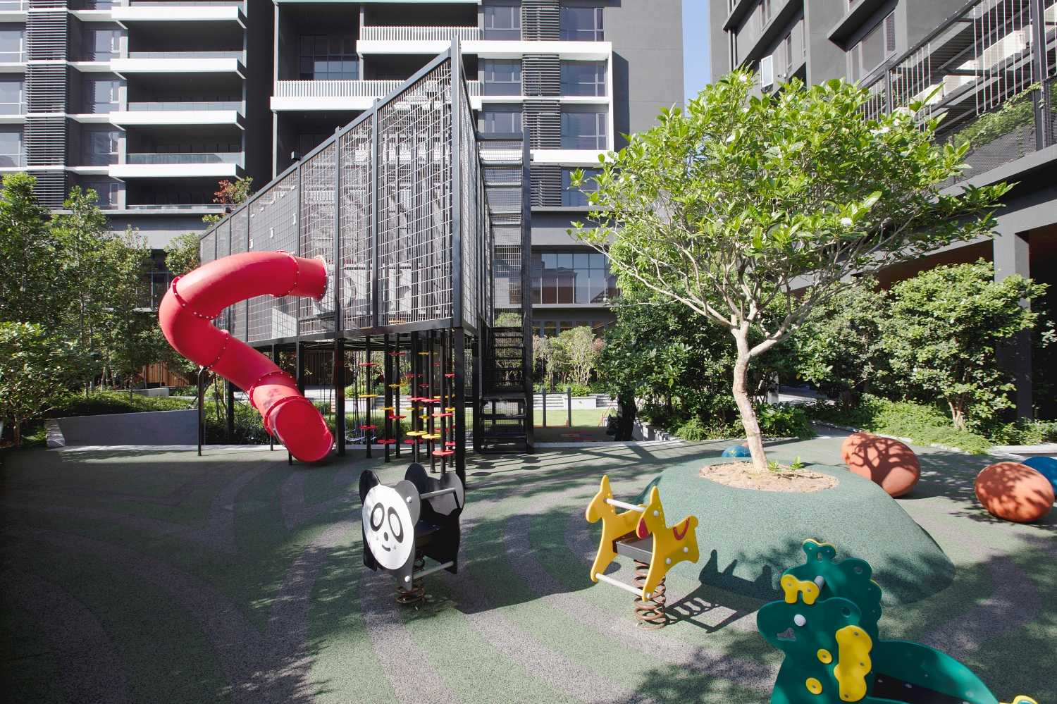 Additionally, communal areas feature multiple green spaces, such as herb gardens, biofill greenery, and rich landscaping. These spaces provide a pleasant environment for children to play and for residents to take leisurely evening strolls.