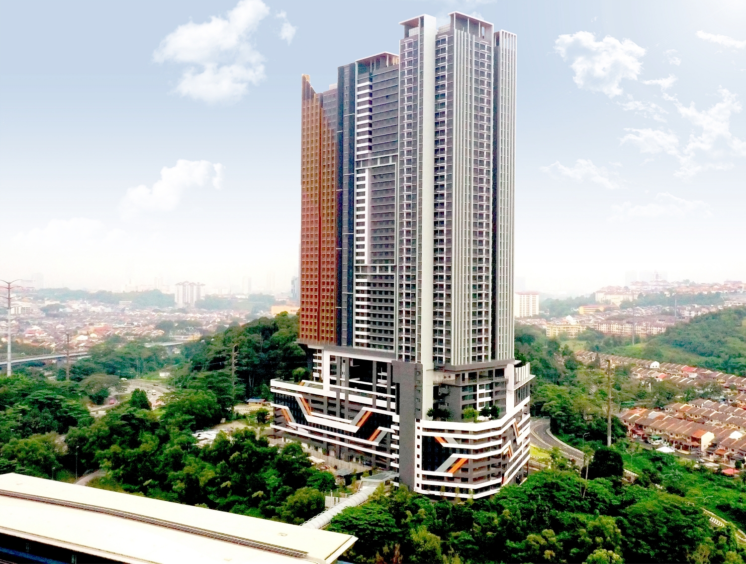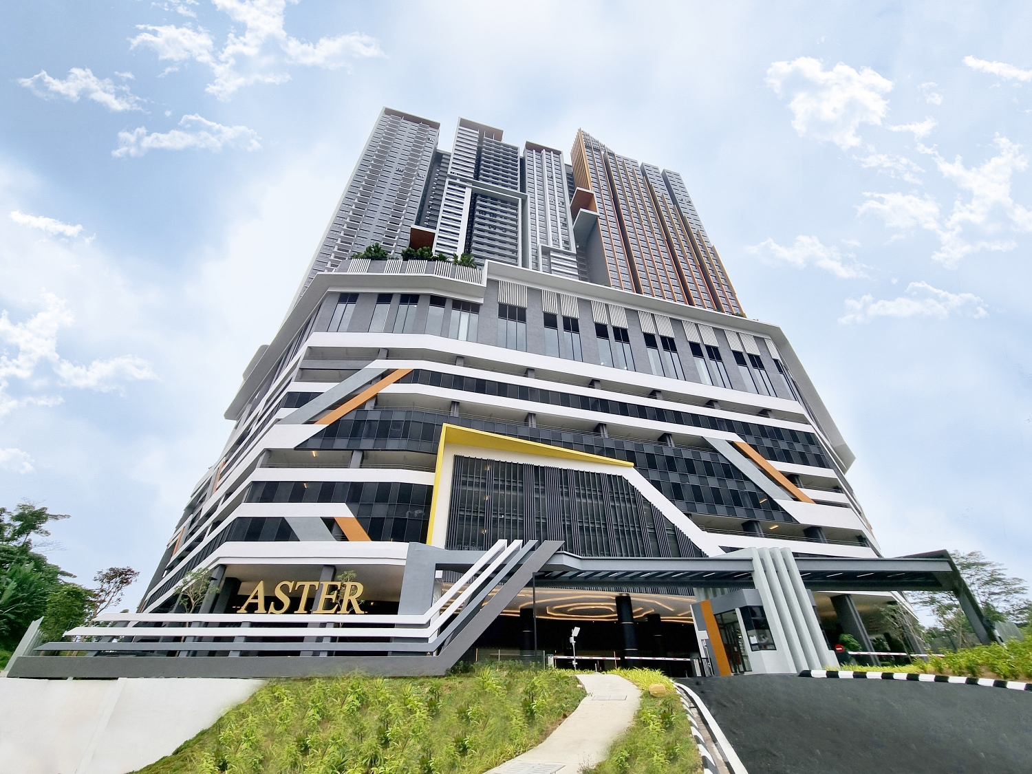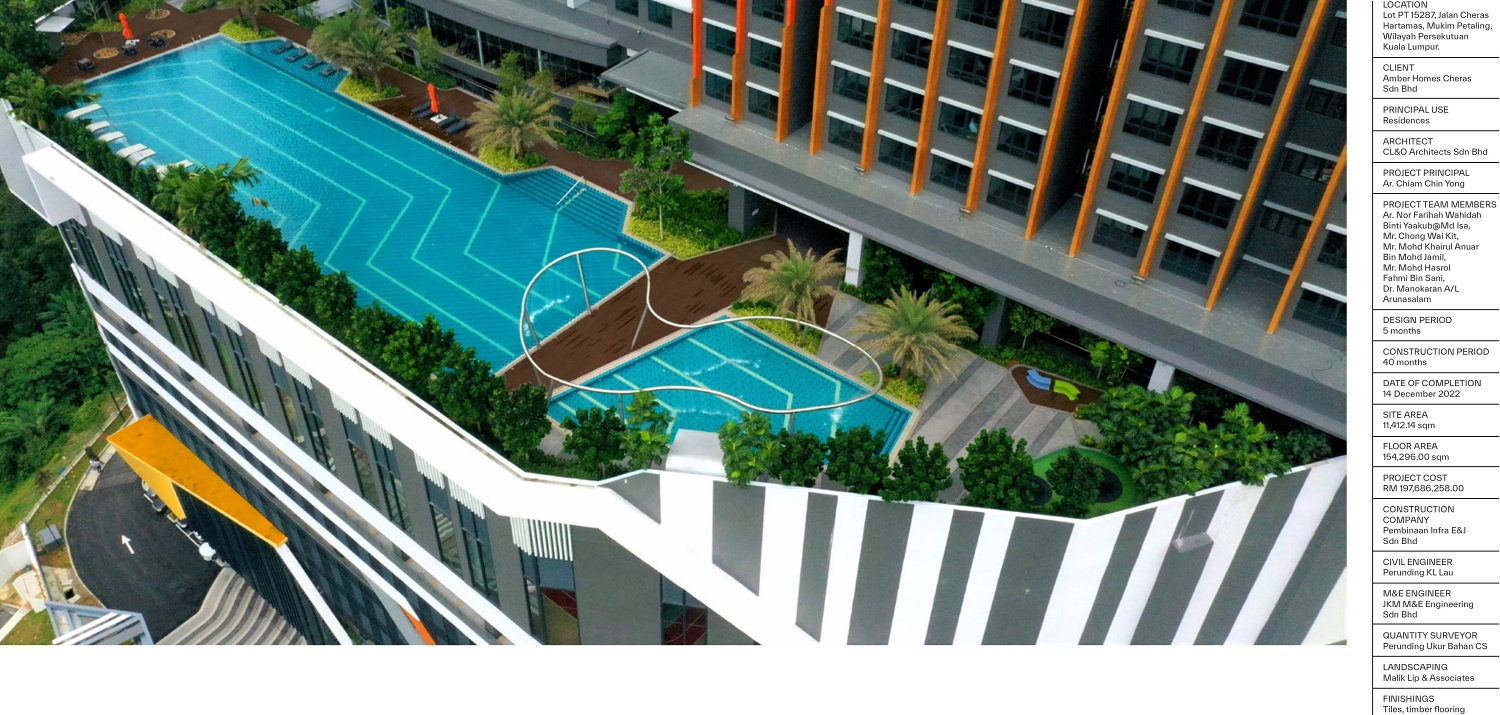 Aster Residence along Jalan Cheras Hartamas, Taman Cheras Hartamas, Cheras, Kuala Lumpur is designed as a modern serviced residence that breaks away from conventional high-rise tower designs. The 43-storey tower atop a 9-storey podium comprises 1,130 serviced apartments in five different layouts and several duplex units spread across three zones in the tower.