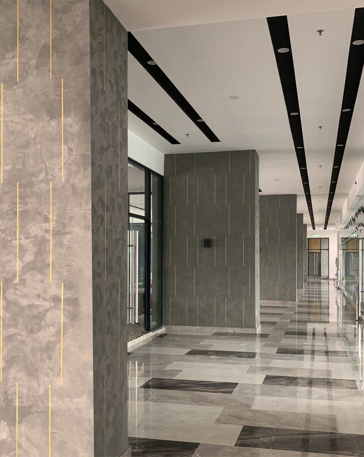 Aster Residence’s three zones are identifiable by unique façade designs. Zone A has bright orange vertical fins between each window bay; Zone B features bold frames and fins, while Zone C, the only one to have balconies, expresses them with fine, brown railings; these clear distinctions make the zones easily recognisable from afar. Together, their verticality breaks the perceived width of the tower, which spans over 110 metres from end to end. They are served by dedicated lift lobbies that disallow trespassing between zones, increasing privacy and security. On typical floors, each lift lobby also features different textured paint designs for easier identification.