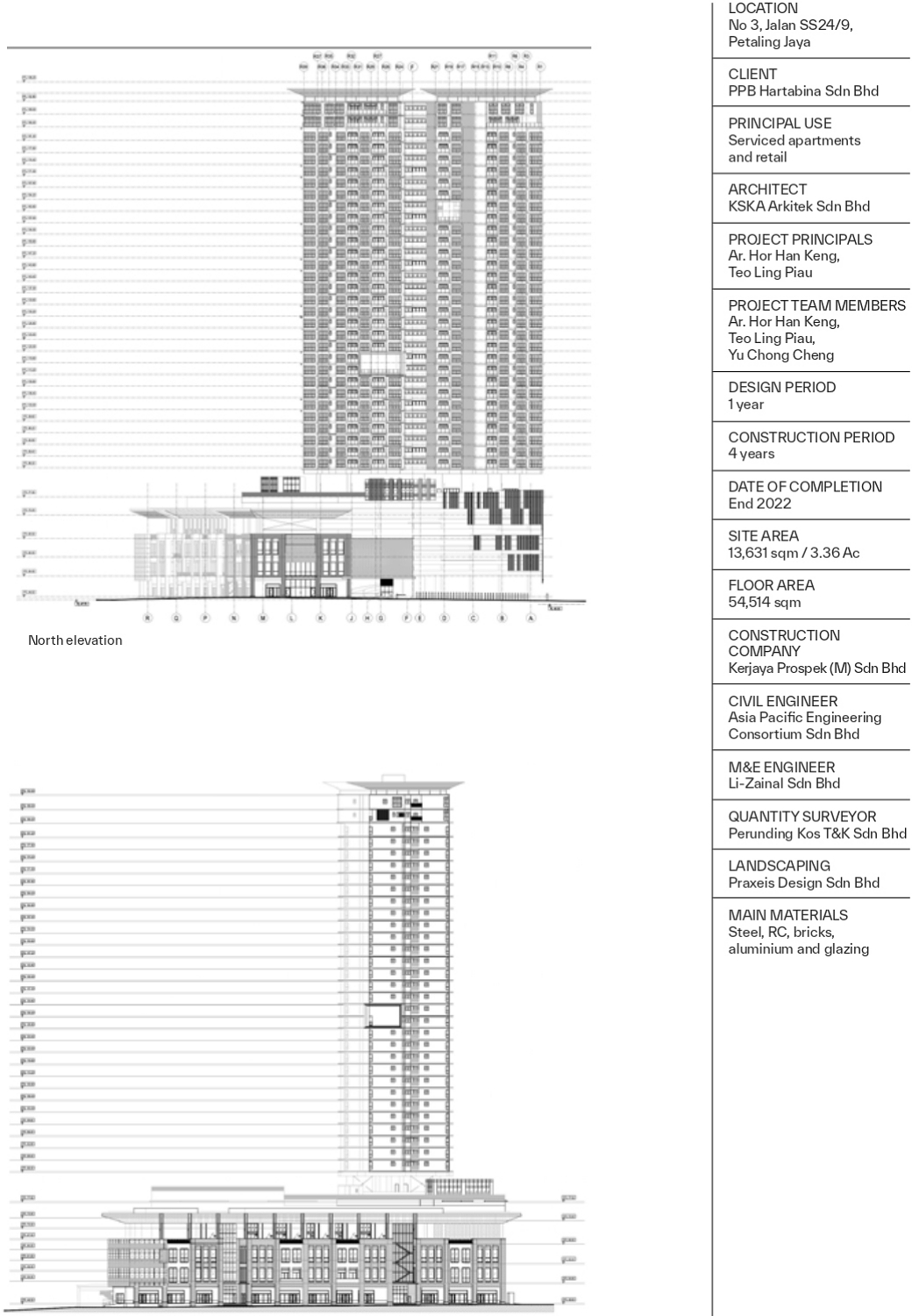This mixed development project is built across a 3.66-acre freehold site, where it holds condo units atop its retail Centre, complementing the commercial lots in the area. Megah Rise has secured 40% to 50% of bookings for the condo units, following its soft launch in November 2017. The residential component features a 31-storey block with 228 units and a 7-storey car park, while the 4-storey retail podium is expected to feature a grocer, healthcare, food and beverage, a multi-purpose community hall, and a 2-level basement car park. The composition of these buildings emanates a welcoming sense, despite their protruding demeanour amidst the neighbourhood. The placement of the taller residential tower on the further back side of the site leaves an open space facing the front road for the shorter retail building. Therefore, creates a hierarchy of building heights that start from the street level and end up at the towers as the highest element in the neighbourhood.