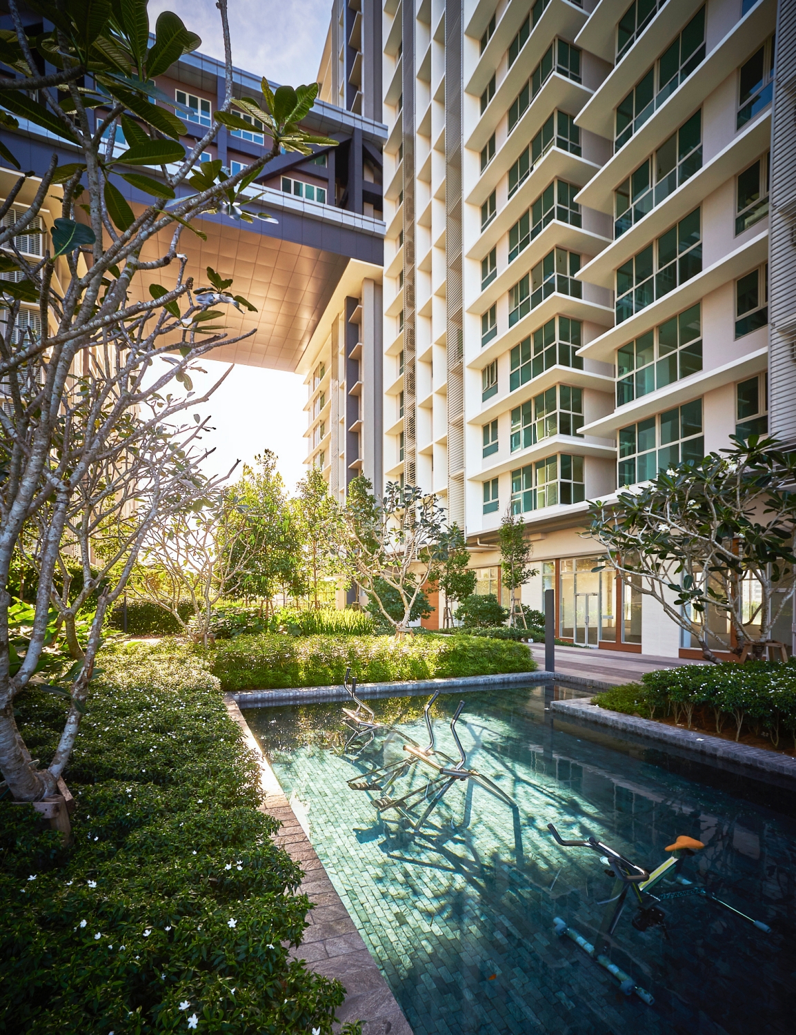 A multitude of facilities allows for active sports such as futsal, swimming and basketball, and also for more holistic and well-being activities; such as yoga, manicured parks and sauna facilities complete with hot and cold dip pools.