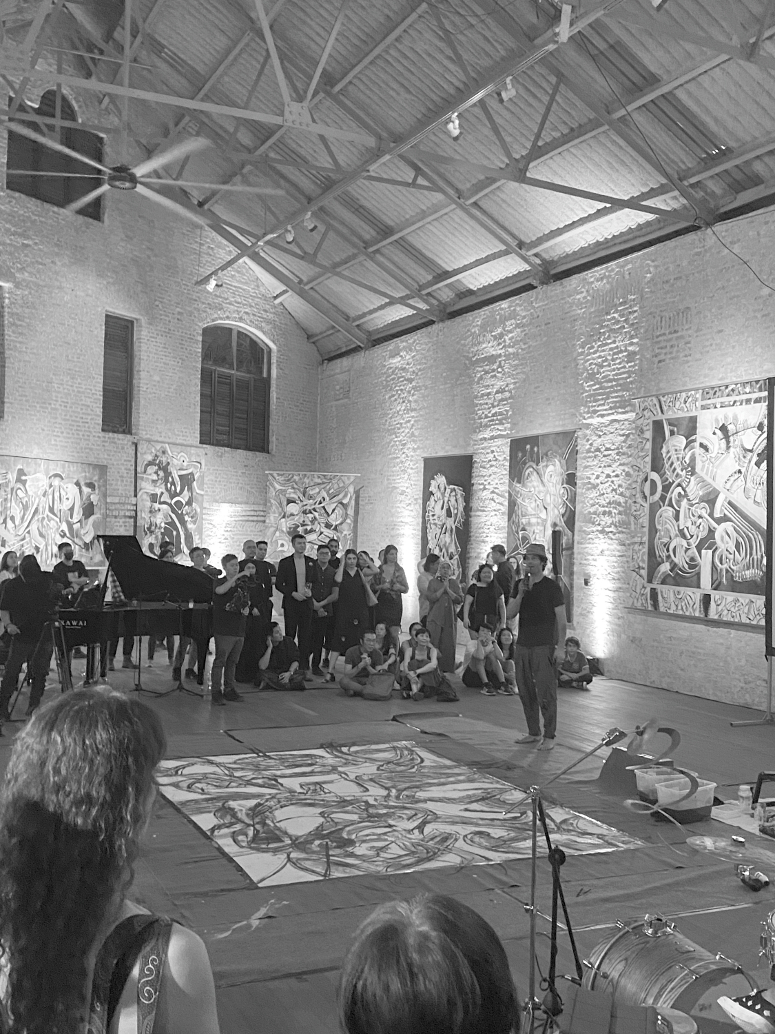 Watching the performance is an interesting experience. As the viewer, one is mesmerised, almost trance-like while watching Vaultman move across the canvas, with the sounds of piano and drums playing in the background. At times, it looks like the music is reacting to the painting, while at other times the painting seems to follow the lead of the music. The push and pull between painting and music flows smoothly, one connected with the other. “If the music goes slow, I would go slow. If the music has a lot of energy, I would go to being high energy. It’s like a children’s game. The intention is not for the painting and music to be separate, but to find a connection between them. Mei Lin and John don’t know about painting, and I don’t know about music, but through the performance, we find the connection between us, like going into a vortex, finding the essence of the common trunk between the two expressions.”He explains that during the performance he lets go of his own personal thinking, not putting too much thought and trying to become a puppet. As he gets into it, he feels the rhythm and the nuances in between, and the trio discover what could be produced from it. He shares that with each performance they do it is completely different as they get deeper in understanding each other. “Each time we do it, each time it’s different. It’s magical.” As the audience, it also feels as if one is guided into the vortex and finding our essence within the swirl. The emotions that swell up are unique to each individual, touching and resonating with the art. “Sometimes people would feel something and even cry, I might not know what is it that touched them, but it also means that they are connected with the art on an emotional level.”