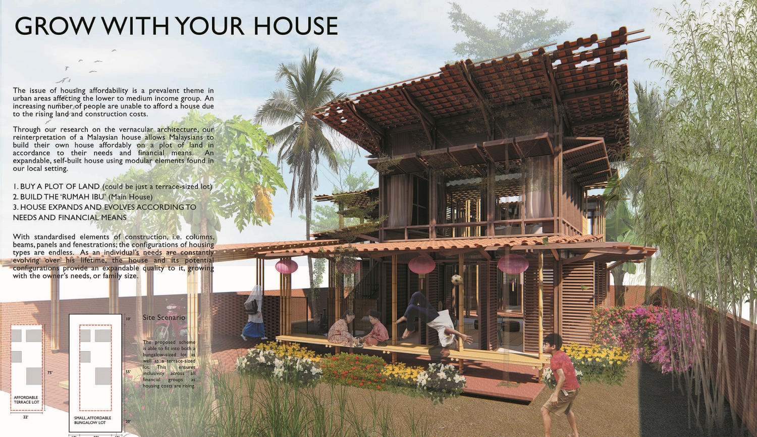 With standardised elements of construction, i.e. columns, beams, panels, and fenestrations, the configurations of housing types are endless. As an individual’s needs are constantly evolving over his lifetime, the house and its potential configurations provide an expandable quality to it, growing with the owner’s needs, or family size.