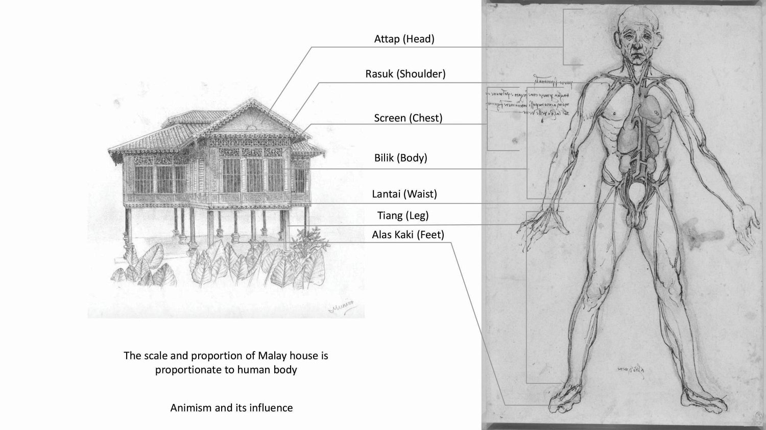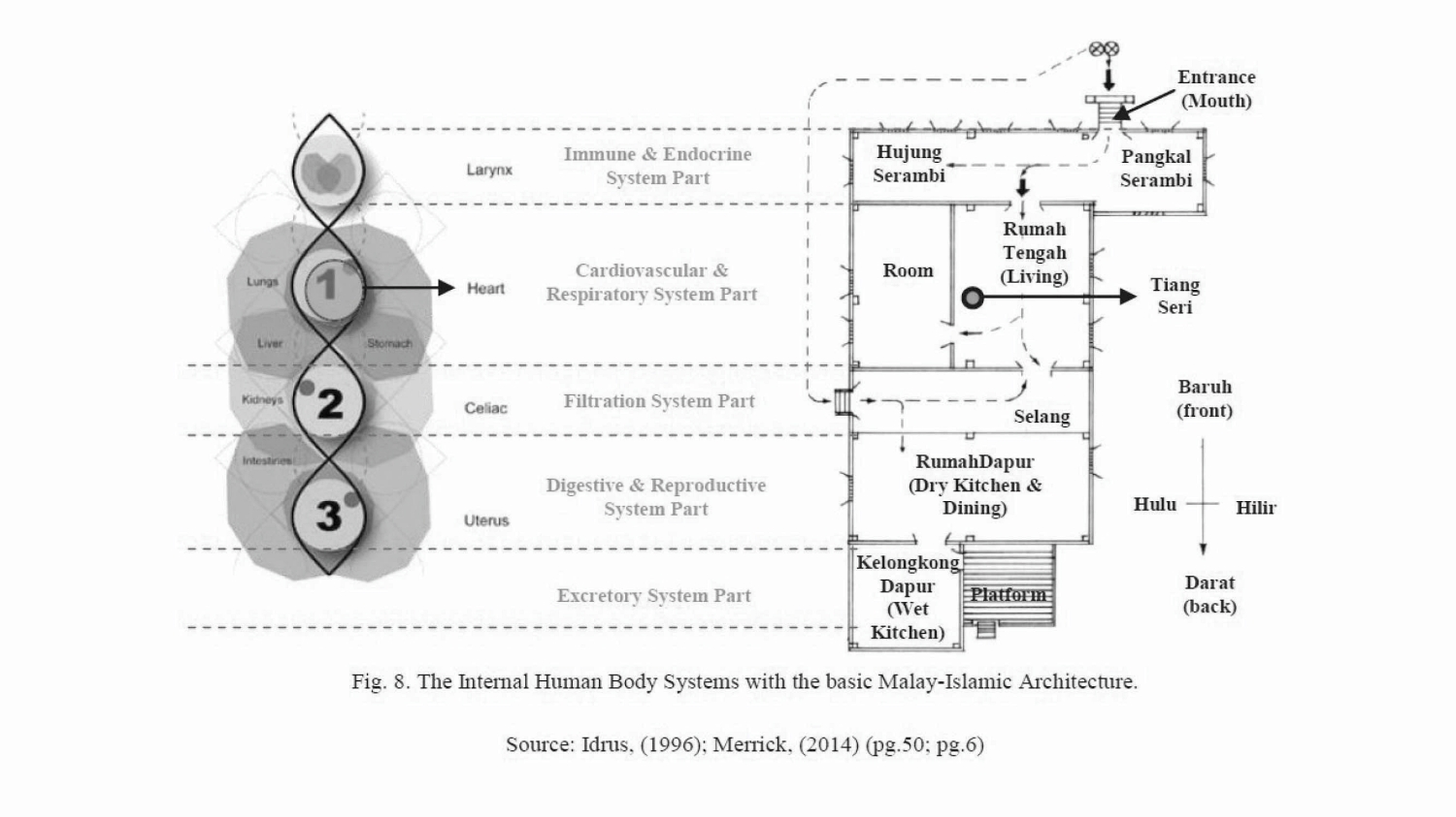 In traditional Malay houses, the formation of the house is also a reference to the human body.