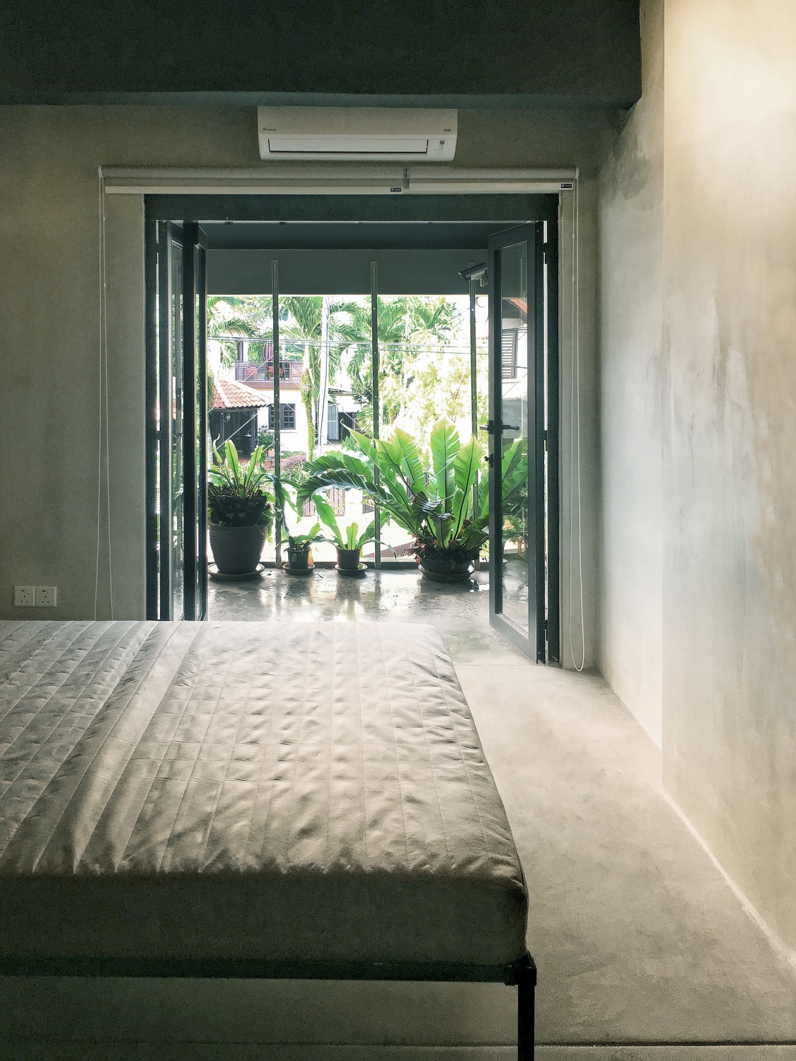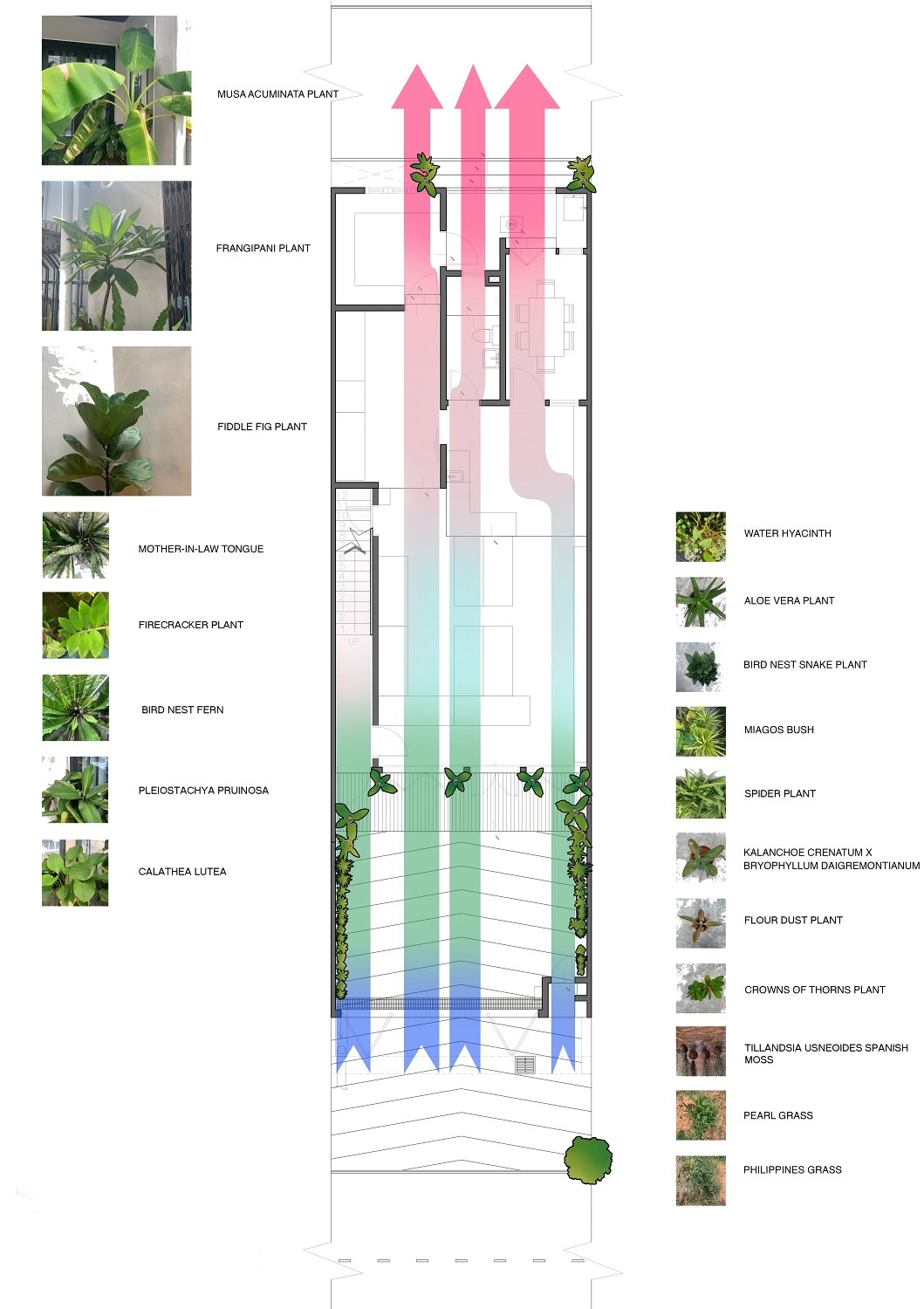 The modernisation of the typical terrace house features the synchronization of circulation and ventilation of a building. With clean air being processed by the green plants at the front porch, rear porch and balcony, additional 5 mechanical fans are installed to bring fresh air into the cluster of spaces. Any opportunity to allow for neighbourhood engagement is encouraged with a low party fencing wall, a see-through gate, and a see-through balcony. This is intended to create a friendly neighbourhood among the Malaysians with the foreign workers living on the same street.
