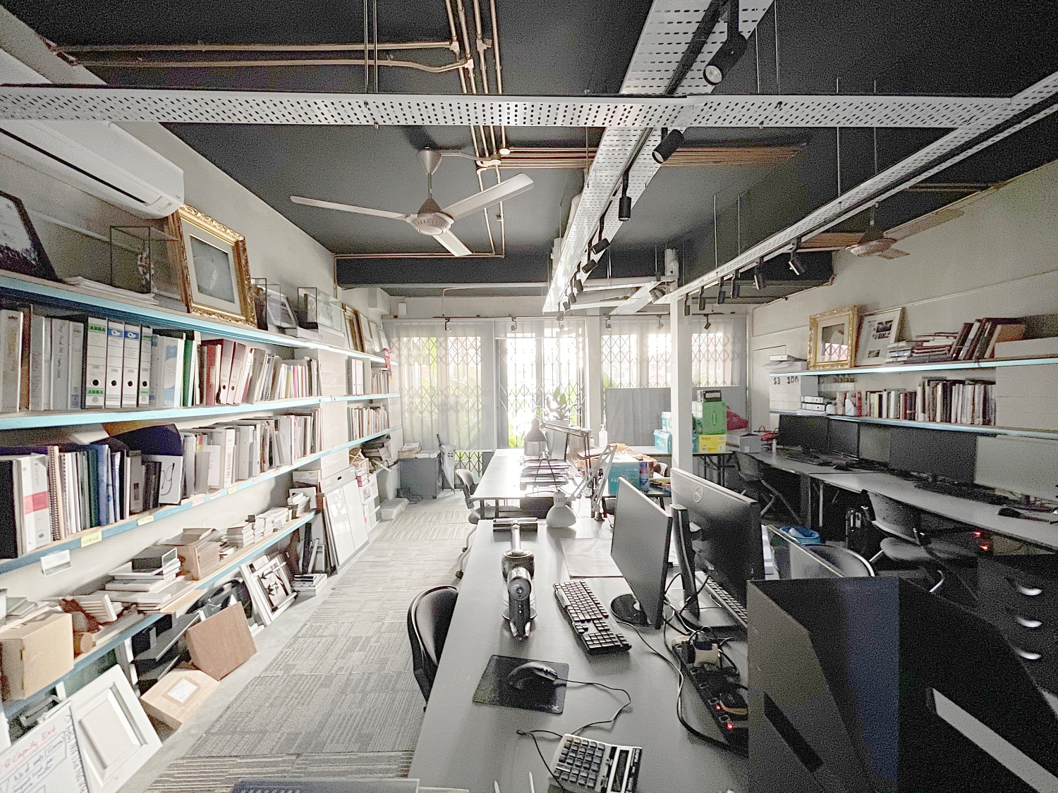 The journey of remodelling begins with a redefinition of space usage. Upon entry to the 96 sqm ground floor, the work live concept comes to play. A wide working space leads to a private discussion room, washroom and second studio space. A door will lead to an open space for a pantry and landscaping space. The house becomes a dual frontage with its porch, creating a dual key system to the front studio and the rear studio, and allowing direct access to the shop lots at the rear. By doing so, the design relooks into a derelict and uncared back lane space being revitalised with circulations and greeneries.