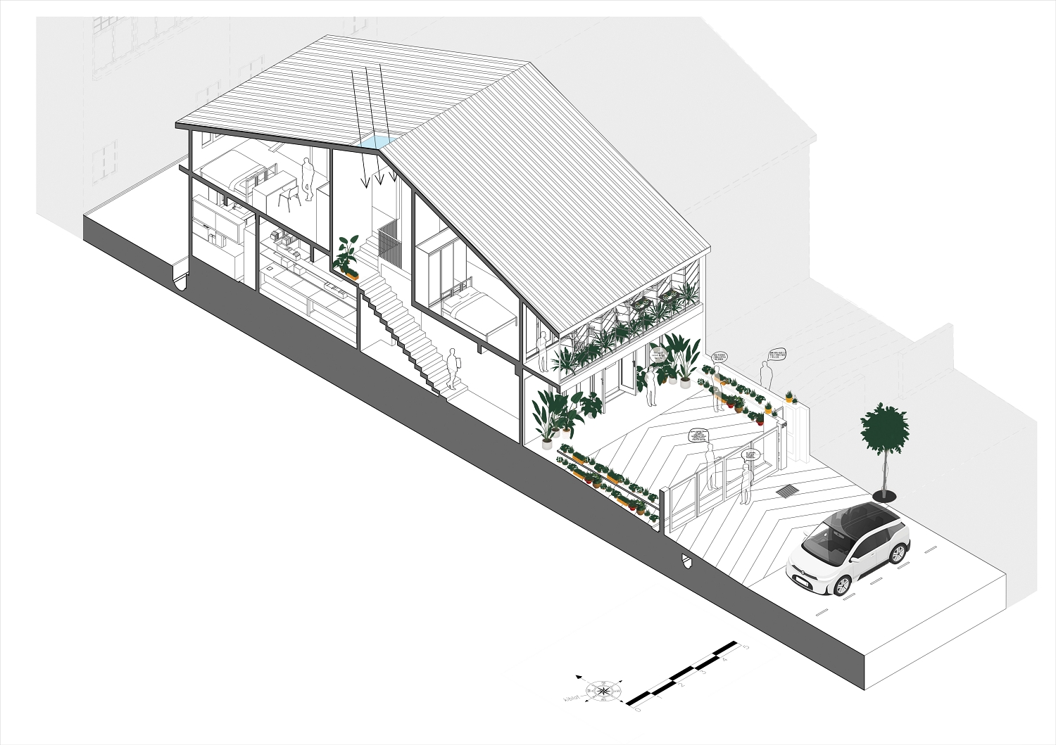 Built in the 1970s, a typical Petaling Jaya (PJ) terrace house desperately needed transformation to meet the living needs of the 2020s, with the neighbourhood lifestyle consisting of higher dependency on private entertainment, ageing marriage age, and the increasing of second generations returning to PJ. Contextually, the 2-storey house’s remodelling addresses the transformative of the urban fabric, as the neighbourhood is accommodating the growing families, new younger owners, as well as foreign workers.