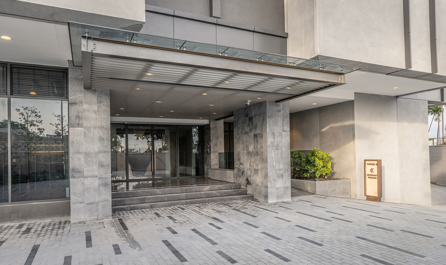 The entrance and guardhouse underwent a significant upgrade with travertine stone cladding, in sync with Tower A’s frontage design. It serves as the primary drop-offand pick-up point for Tower B, along with a secondary car park entrance. The enhancements elevate the site’s aesthetic and functionality.