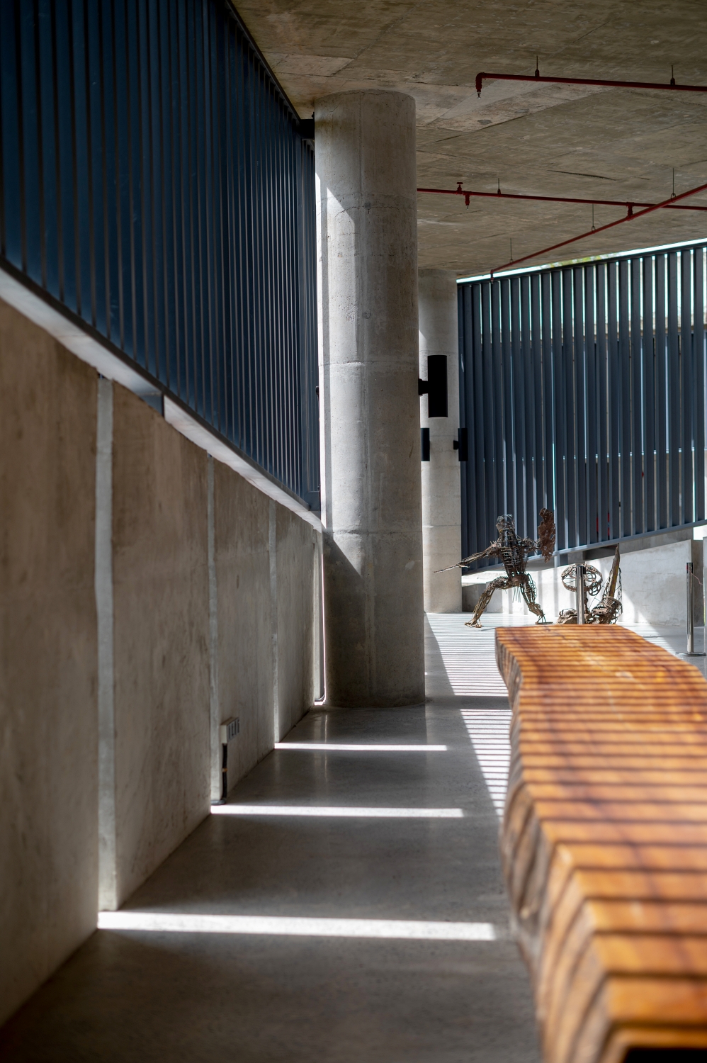 The facade is an element of art: vertical louvres shade the interior from the sun whilst creating an interplay of shadows reflected onto the floors and walls of the building. This way the gallery will always be animated, not only by the physical artwork but also by the ingenious architecture. The design speaks about creativity especially when it is centred towards creating a creative community for the youth.
