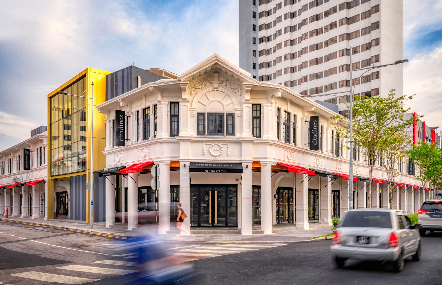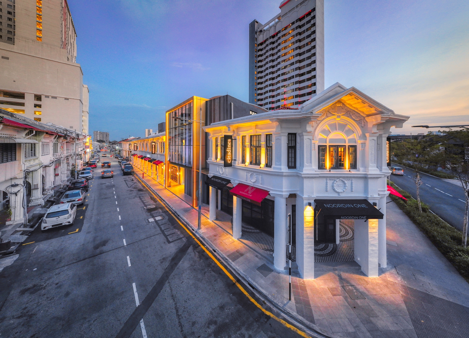 Made up of 29 attached shophouses, the cluster of units was combined to create a cohesive hospitality and commerce hub, equipped with 79 rooms and a row of shops on the ground floor. The design incorporates a nearby vacant land into its scheme as surface parking, providing the minimum amount of car park required to discourage the use of private vehicles in the inner city. With the completion of Baby BIDS @ Gurdwara in 2019, George Town’s CBD is taking gradual steps to becoming the most pedestrian-friendly area in the state. Noordin One/ Citadines echoes this sentiment by extending the pedestrian realm into its publicly accessible courtyard.