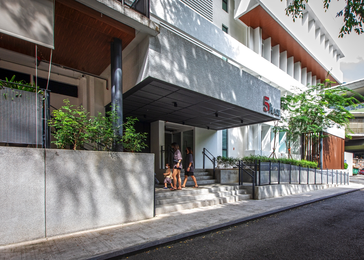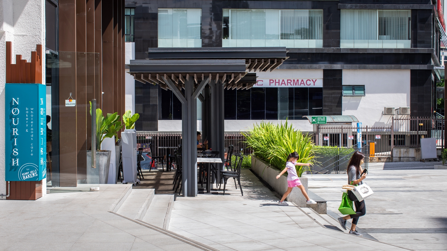 Nestled along Jalan Semantan, Kompleks Pejabat Damansara (KPD) is a low-rise, five identical blocks of government office enclave built in the early 1970s surrounded by lush greens. This first program to repurpose Block A into 5th Place as a signature 4-storey boutique retail capitalises on adjacence to MRT Station and street plaza before an ample esplanade of raw concrete.