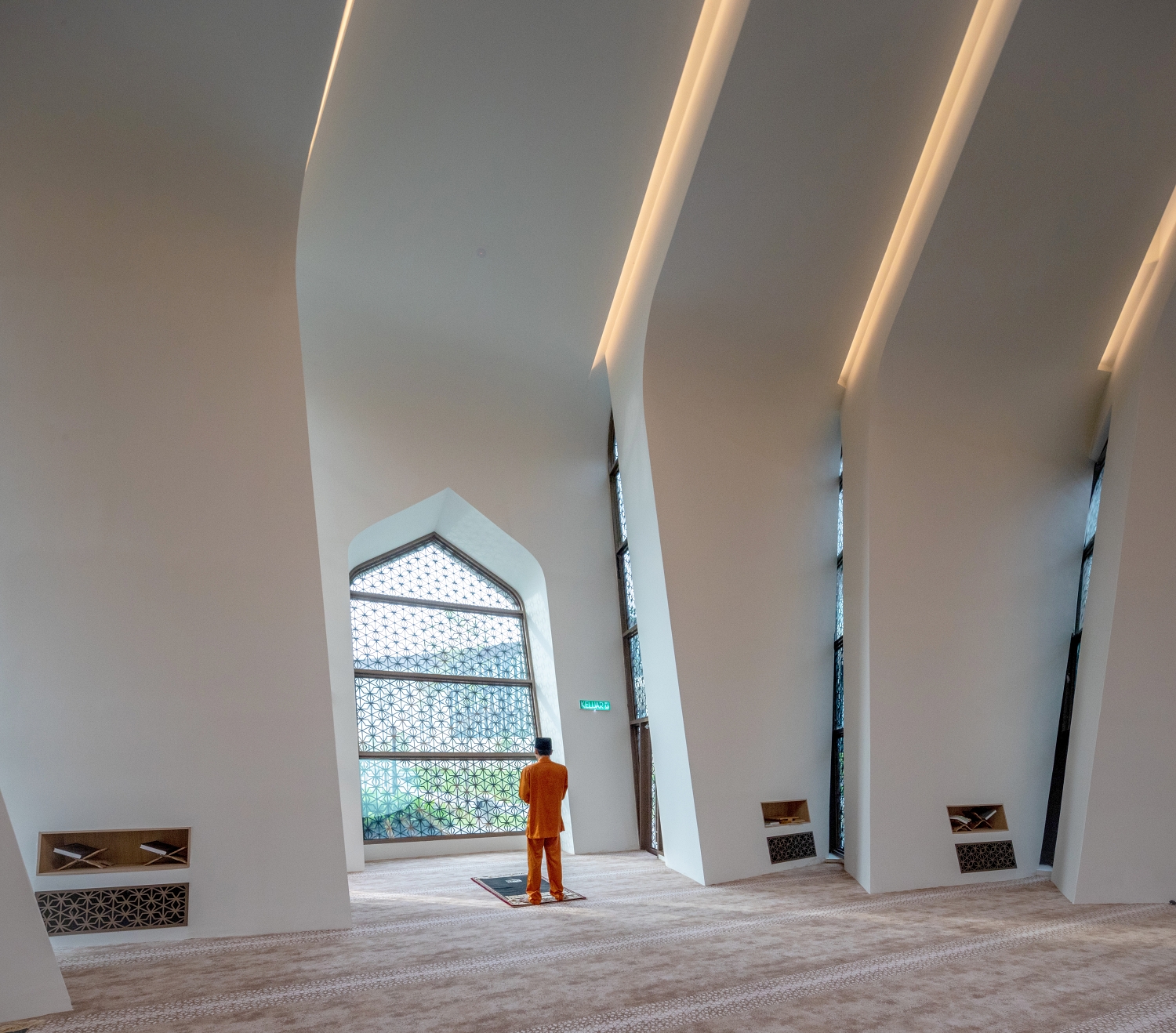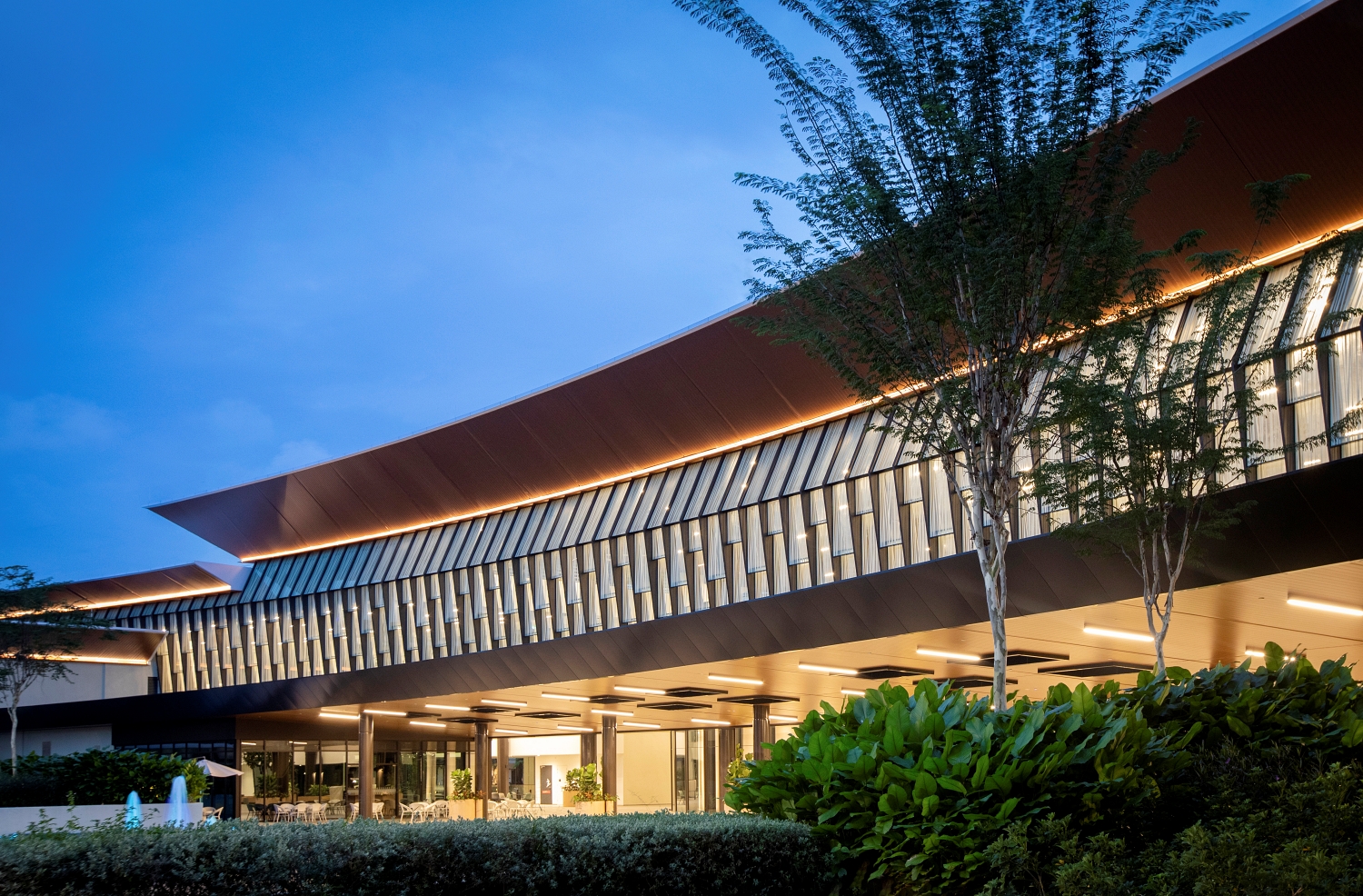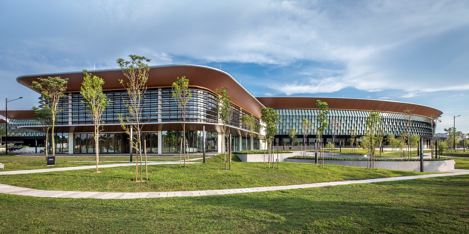 Inspired by the micro climatic condition of the traditional tropical village environment, the master planning of the campus is organised to integrate with the landscape elements as a way to lower the surrounding ambient temperature. The curved forms encourage a wind tunnel effect that cools the building naturally. The building skin is designed to optimise natural ventilation without compromising rain penetration.