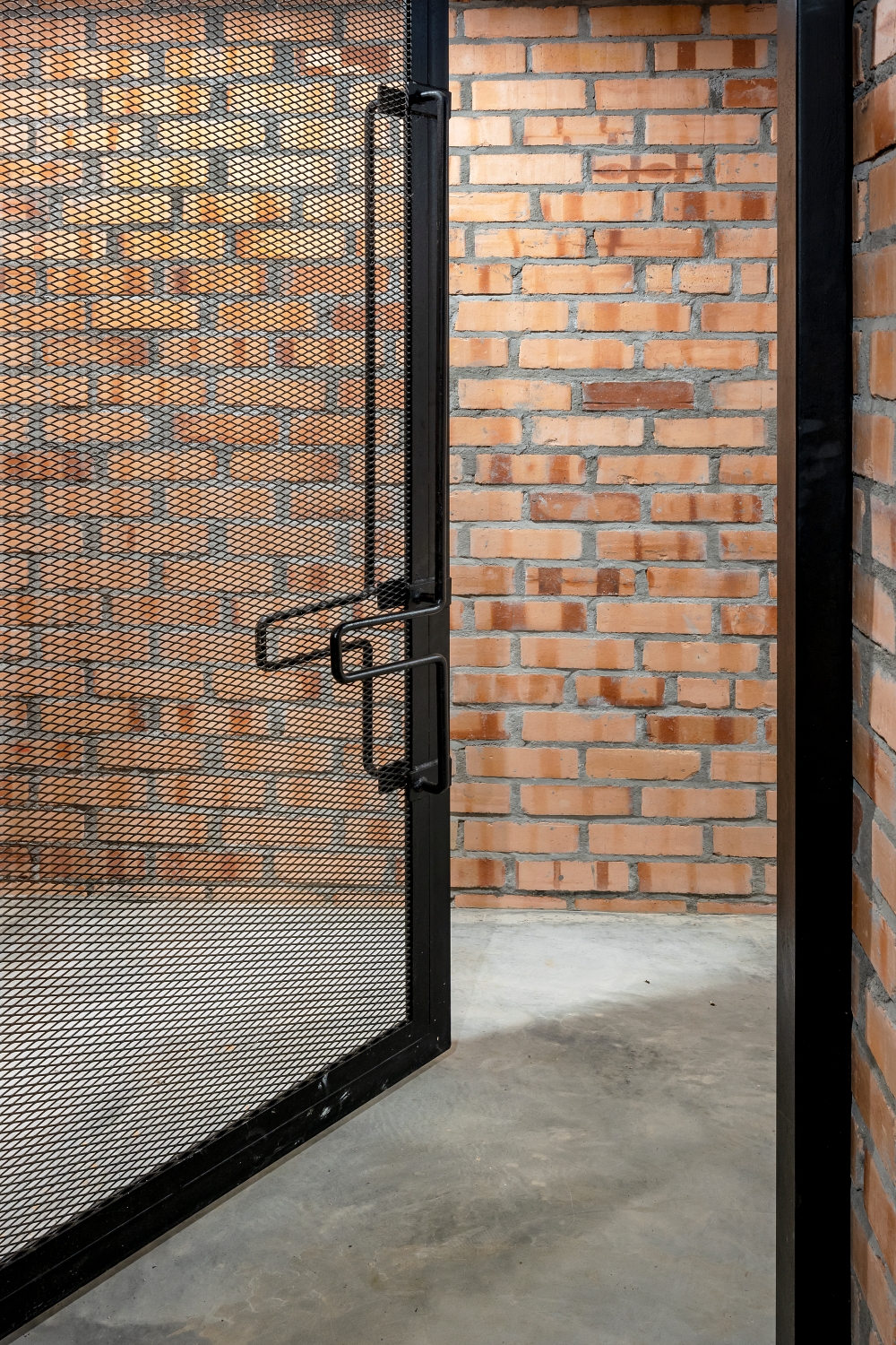 A pair of Corten steel doors with industrial vigour allows an extension to lengthen the box profile as well to provide an opening for daylight with ventilation. It was accomplished with the introduction of a cantilevered balcony by stretching the floor plate.