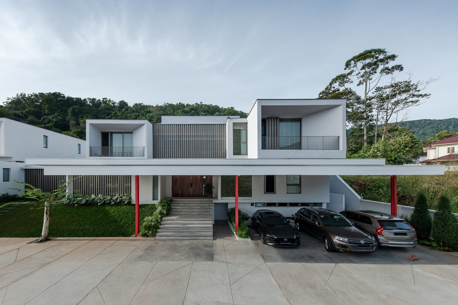 The contemporary bungalow is situated on a plot of land measuring 1,187 sqm with sloping terrain against the picturesque forest backdrop and overlooking a valley basin, within the golf resort of Meru Valley. While the emphasis on fostering close family relationships was defined within the scope, the owners’ penchant for design exploration desired a residence which would stand out from the conventional dwelling, with a degree of design variation as they navigate the spaces all contained within a 14.4-metre-high double-storey structure with a recorded build-up of 8,166 sqft.