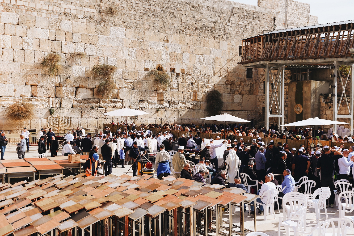 During our visit, the Western Wall was a hubbub of activity. Colloquially known as the‘Wailing Wall’, it is the holiest site for Jews. Prayers are traditionally spoken or written down and placed into the cracks of the wall; many opt to celebrate their Bat Mitzvahs here. The site is home to the First and Second Temple, while the wall is the remnant of the retaining wall surrounding the Second Temple. The wall currently visibly stands at 19 meters, although its original height was 60 meters.