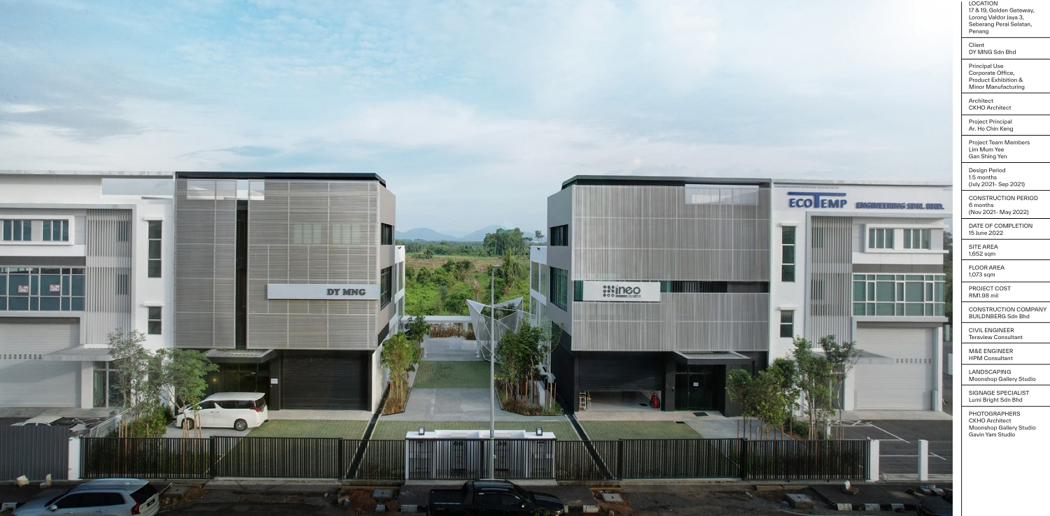 The pairing occurs throughout the flow of the two buildings, within both their interior and exterior spaces.By using the existing mass and spatial qualities of the buildings, a barrier-free circulation is created to enhance the connection between the two.The outlook is paired to break rigidity through cohesive aesthetics, creating a design language that reflects the company’s identity.This project pairs the contradicting nature of its functions, connecting the ‘heavy’ production with the ‘light’ office through architectural interventions.The design celebrates industrial architecture by selectively exposing elements, elevating its identity.Structural steel columns and beams are left visible to portray an impressive industrial construction.