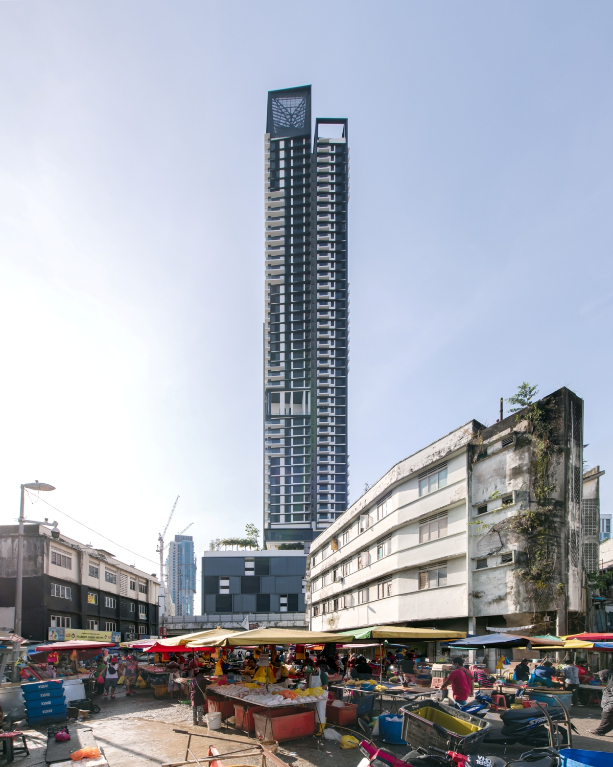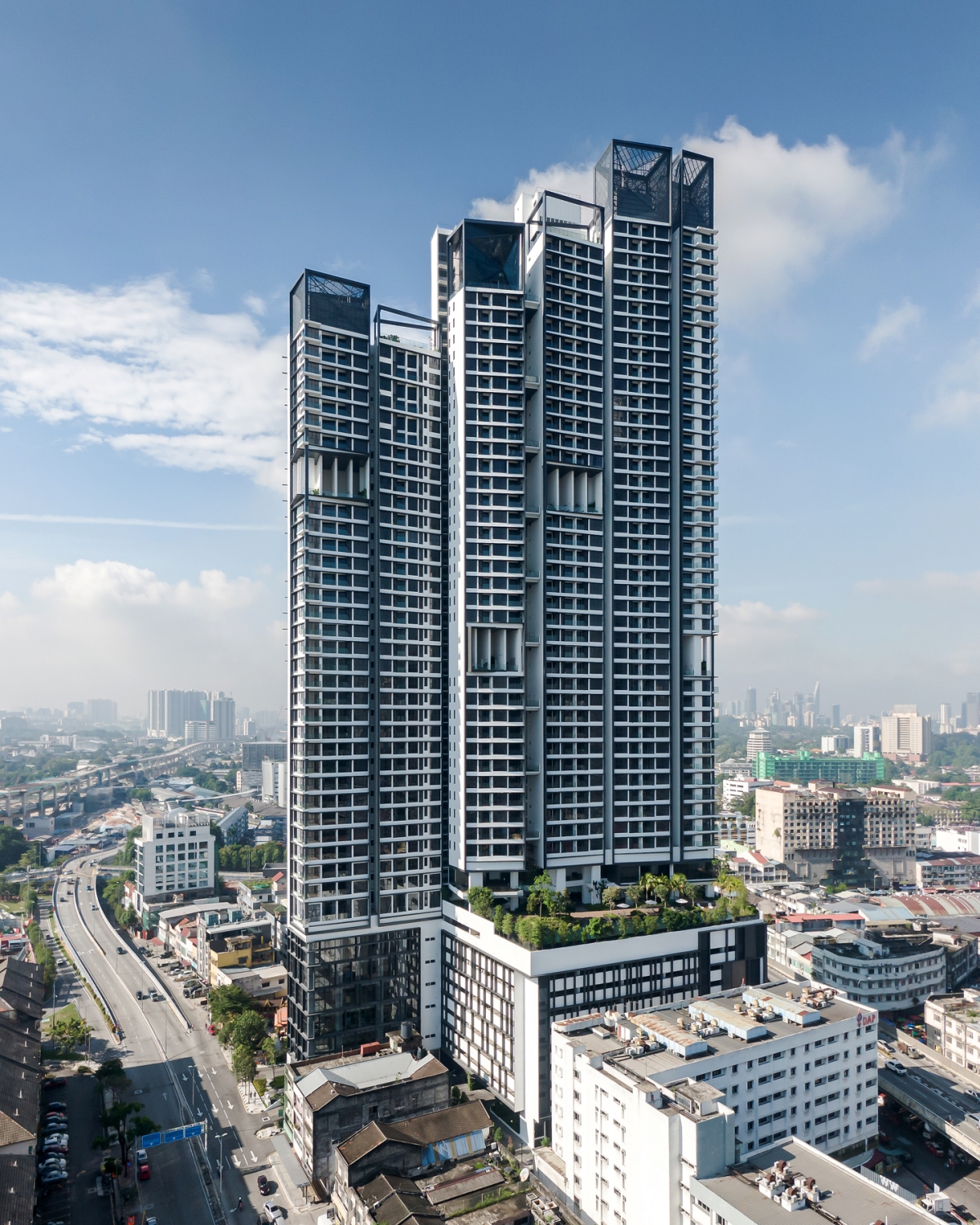 Its presence exudes prominence and integrates harmoniously with its historical neighbourhood, one of the oldest and largest wet markets in Kuala Lumpur, the Pudu Market.Continew Residences is conceived with the notion of bridging nostalgia and the continuity between the Old and the New by adding a fresh new aura to the neighbourhood.With its surrounding historical vintage shophouses comes its legacy as one of the busiest streets for its mouth-watering delicacies, fresh produce and ever-bustling market activities.The architectural language and elements are composed to relate not only with its historical surroundings biophilically but also in terms of its functionality, form, and context (the Old) whilst maintaining its own identity (the New) and sustainability.Continew now stands as a new landmark and shining beacon in this stark old precinct, providing an oasis and serenity amid this bustling city with the creation of a new urban living experience.