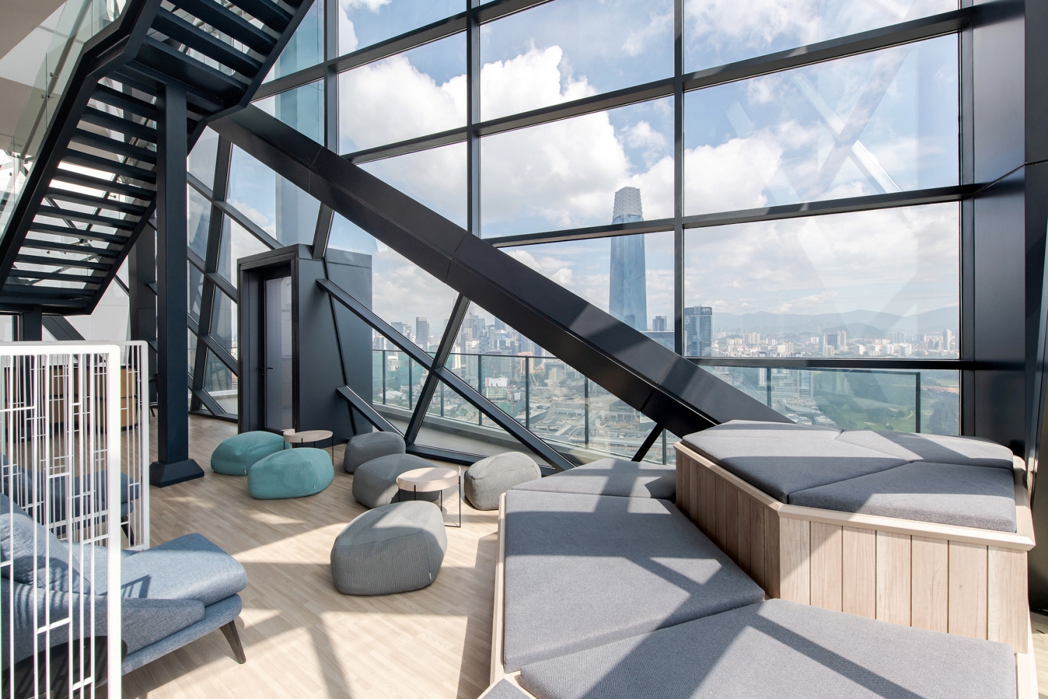 At the the top are three distinct architectural components, the Sky Deck which allows an expansive panoramic view of Kuala Lumpur; the folding sculptural shape of the Sky Lantern which forms the crowning beacon of the development whilst the Sky Lounge, a sculptural glass box serving as an entertainment hub, the highlight of the residents who are mainly Airbnb occupants.This has also made Continew a highly sought-after Instagram venue with a unique high-rise urban living experience.