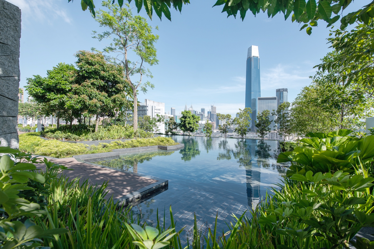 View from the Pool Deck. At the facility floor sits a 50m length infinity swimming pool overlooks the panoramic and majestic Tun Razak Exchange