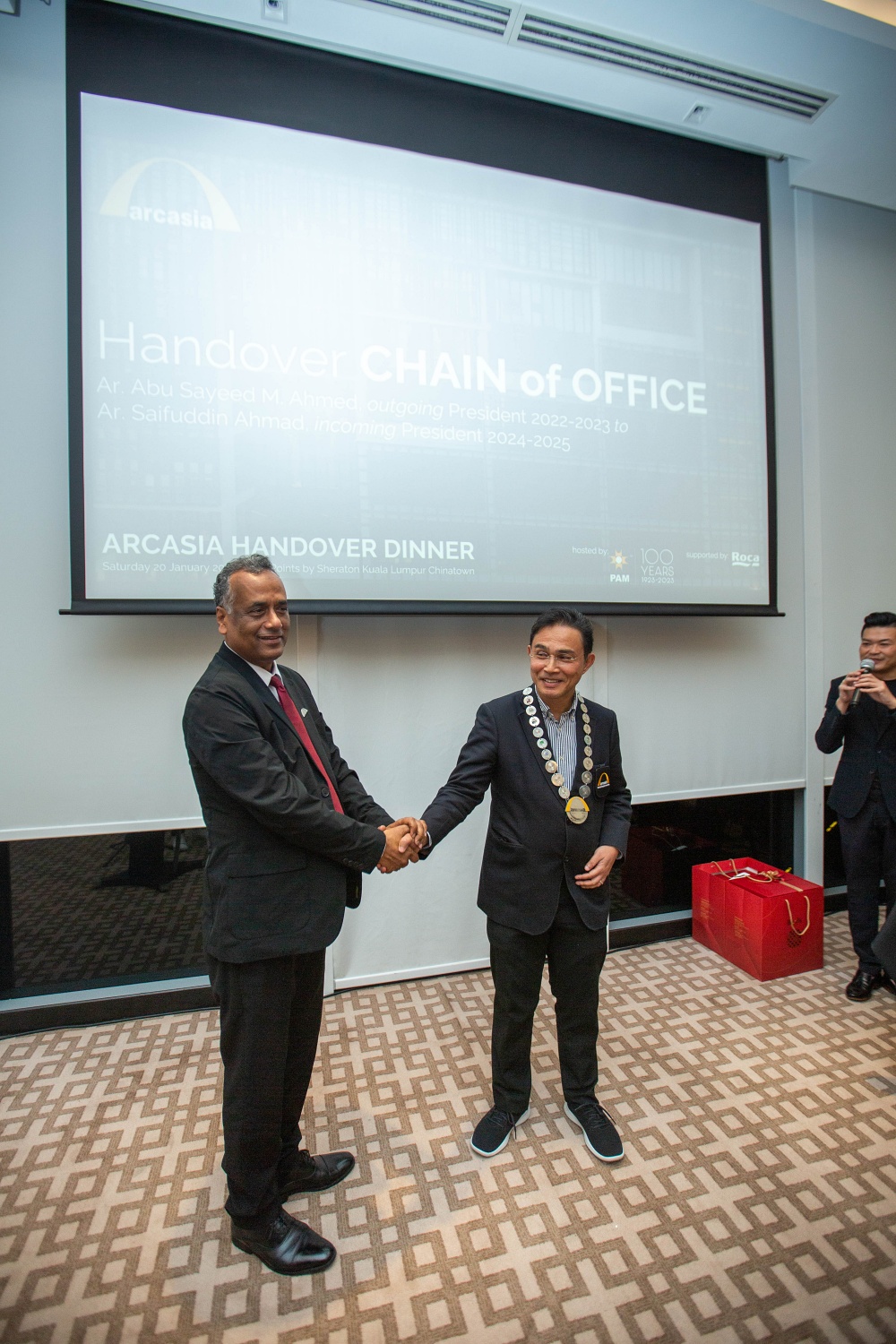 During the dinner outgoing President Abu Sayeed handed over the chain of office to incoming President Saifuddin, who later introduced the office Bearers and Committee Chairs for the 2024-25 term. PAM Vice-President Ar. Dexter Koh & Honorary Treasurer Ar. Ridha Razak were appointed ARCASIA Honorary Secretary and Honorary Treasurer respectively, while Past President on Council Datuk Ar. Tan Pei Ing was named one of two Advisors of the President. Ar. Alice Leong was elected Chair of ACGSA – ARCASIA Committee on Green and Sustainable Architecture.