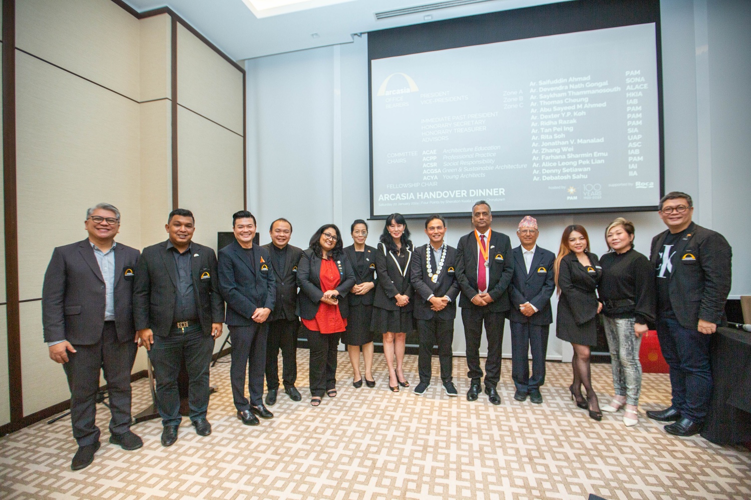 A Handover Dinner was held later in the evening at Four Points by Sheraton, Chinatown, hosted by PAM and supported by ROCA. Guests included former Mayor of Kuala Lumpur Tan Sri Ahmad Fuad bin Ismail, Past President of Lembaga Arkitek Malaysia Dato Nur Haizi Abdul Hai, PAM President Ar. Abu Zarim Abu Bakar, PAM Past Presidents and Council Members. ARCASIA delegates consisting of both outgoing and incoming OB/CCs from Nepal, Laos, Hong Kong, Bangladesh, Singapore, Philippines, China, India, Indonesia, Sri Lanka, Japan and Pakistan were also in attendance