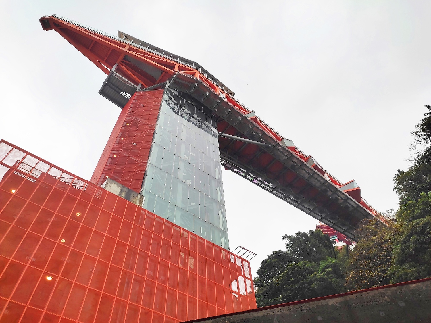 The Keelung Tower – in reality, a tower-bridge hybrid is a bold urban gesture which directly connects the city and its streets with the Zhupu Altar, the main temple overlooking the city from the top of the hills. Rising from a ramped, triangular plaza somewhat hidden at the back of existing buildings, the tower provides a vertical connection to a horizontal structure – a bridge which acts as an open-air observation platform. The bridge structure provides access to the Zhupu Altar on the hills. From the observation platform, the view is truly spectacular. More than simply offering a fantastic view, the tower contributes towards urban legibility and visual connectivity by showcasing the entirety of Keelung City, as well as the mountains, the port, and the sea from its vantage point. The muscular, industrial architecture of the tower, which might seem out of place on first encounter, makes sense when one sees the equally muscular, industrial cranes at Keelung Port.