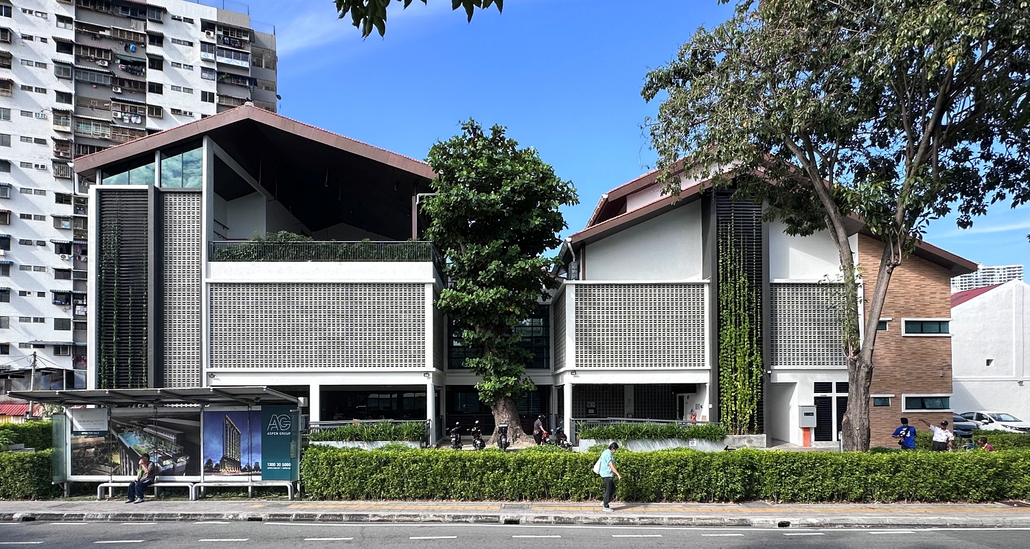 Also, the roofline of the building is designed to speak the same language as the surrounding local heritage site context, which is the pitched roof design. Recognising the practicality and functionality of the pitched roof design in the local climatic context, it is emulated in harmony and resonance but to further enhance the building’s operational sustainability, an additional layer of solar photovoltaic cells is adorned above the pitched roofs to harvest solar energy, utilising the system to reduce the Shelter’s energy bills, as well as enable more savings when excess solar energy is harvested.